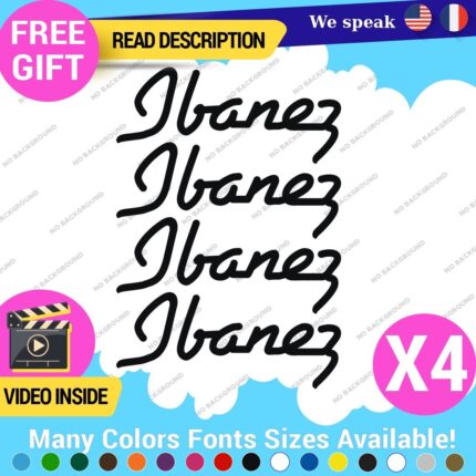 Enhance your Ibanez guitar with this set of four vinyl decals featuring custom logo replacements. Made from high-quality Oracal vinyl, these self-adhesive stickers are ideal for various surfaces including vehicles and equipment. Available in multiple colors and finishes, they are designed for durability with a 5-year warranty. Perfect for musicians looking to personalize their gear.