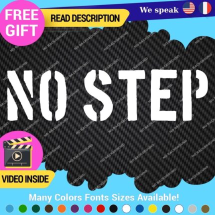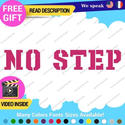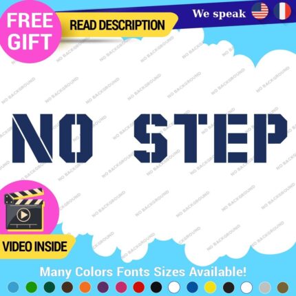Introducing our No Step Decals, durable vinyl caution stickers designed for vehicle marking. Available in various colors and finishes, these self-adhesive decals are perfect for placement on bumpers, doors, and windows. Crafted from high-quality Oracal vinyl, they ensure long-lasting visibility with a 5-year warranty. Enhance your vehicle's safety with these customizable stickers, ideal for any vehicle type. Priced between $8.65 and $11.65, they offer a professional touch to your cautionary needs.