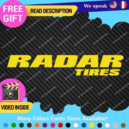 Enhance your vehicle's appearance with Fits Radar Tires Decals Stickers. Made from high-quality Oracal vinyl, these customizable decals feature a variety of colors and finishes, including glossy and matte options. With a self-adhesive design, they can be easily applied to different parts of your car or truck. Suitable for universal fitment, these decals add a personalized touch to your rims while boasting a 5-year warranty for durability. Available at an affordable price range of $8.65 to $14.65, they are perfect for car enthusiasts looking to elevate their ride's style.