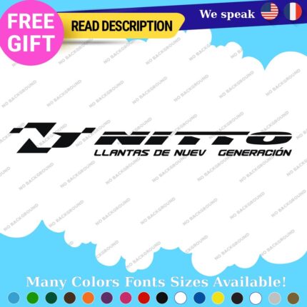 Enhance your vehicle's appearance with Fits Nitto Tires Stickers Vinyl Decals. Designed for versatility, these decals can be applied to cars, motorcycles, trailers, and more. Made from durable Oracal vinyl, they feature a range of colors and finishes, offering customizability for any aesthetic. With a 5-year warranty, these self-adhesive decals are perfect for showcasing your style while ensuring lasting quality. Available at an affordable price, they are a great addition to any ride.