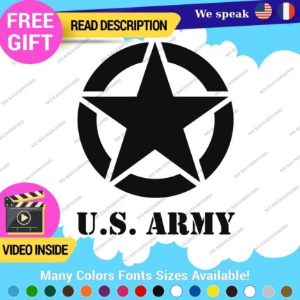 Enhance your vehicle's appearance with the Fits Large Army Star US Sticker Vinyl Decal. This customizable decal, made from high-quality Oracal vinyl, features a striking design suitable for various placements on trucks, cars, and trailers. Available in multiple colors and finishes, it offers a durable, self-adhesive solution for expressing your military pride. With a 5-year warranty, this decal combines style and longevity, making it an ideal choice for any vehicle enthusiast. Priced between $16.95 and $22.95, it delivers exceptional value.