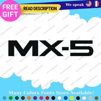 Enhance your Mazda's style with these customizable vinyl decals, perfect for automotive enthusiasts. Available in various colors and finishes, these high-quality stickers feature a die-cut design for a sleek look. Ideal for placement on bumpers, windows, or fuel tanks, they are easy to apply and remove, ensuring a perfect fit for any vehicle. Backed by a 5-year warranty, these decals combine aesthetics with durability, making them a great addition to your tuning or drift setup.
