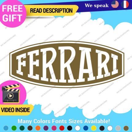Enhance your vehicle's style with our Fits Ferrari Vintage Decals Stickers. Crafted from high-quality vinyl, these die-cut stickers are perfect for various placements on cars, motorcycles, and trailers. Available in multiple colors and sizes, they feature a self-adhesive backing for easy application. Backed by a 5-year warranty, these decals are a stylish addition for any racing enthusiast.