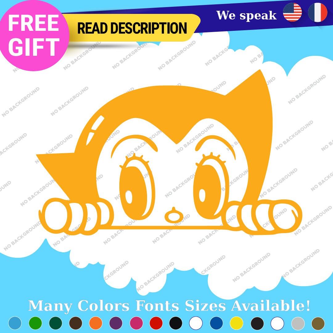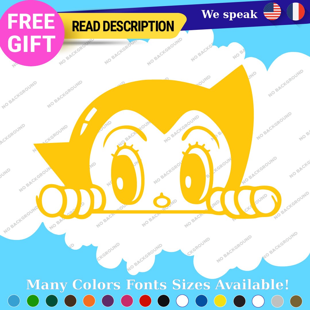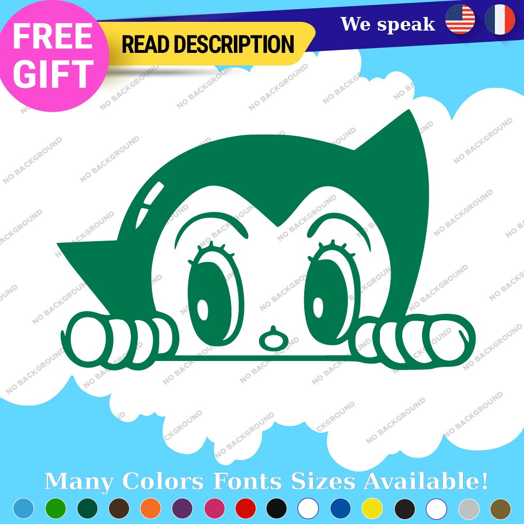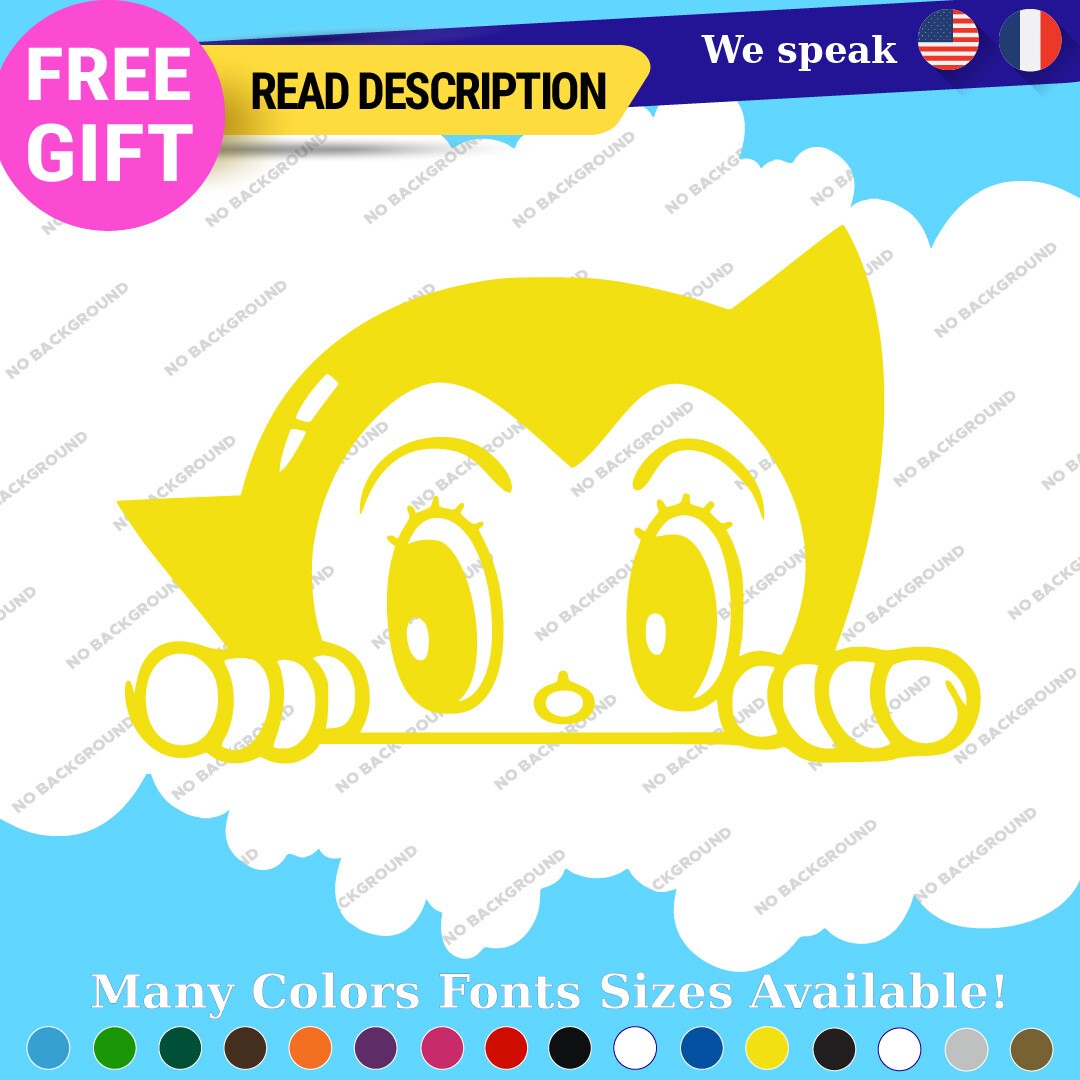 Introducing the Astro Boy Robot Decals Stickers, a must-have for any vintage manga and anime enthusiast. This high-quality vinyl decal features a classic design inspired by the beloved character Atom, adding a touch of nostalgia to your vehicle. Priced between $8.65 and $10.95, these decals are not only affordable but also customizable to suit your style. Manufactured by Oracal in Canada, they come with a 5-year warranty, ensuring durability and longevity. Ideal for various placements on your vehicle, including bumpers, windows, and fuel tanks, these stickers are designed for universal fitment. Choose from a wide range of colors, including glossy black, vibrant blue, and metallic gold, among others, to match your personal aesthetic. With their self-adhesive backing and die-cut features, application is a breeze. Transform your car, motorcycle, or trailer with these eye-catching decals that celebrate the rich legacy of manga and anime culture.