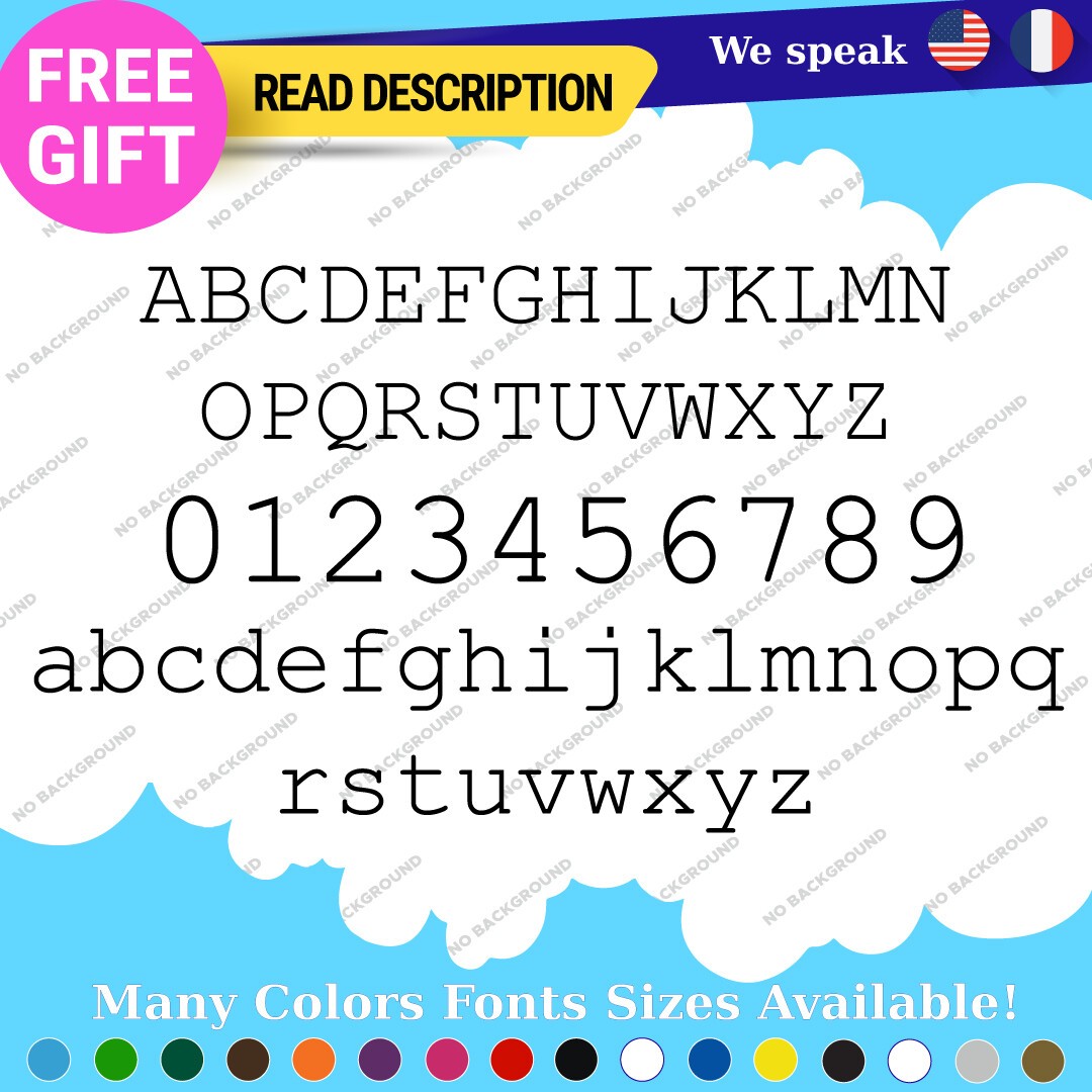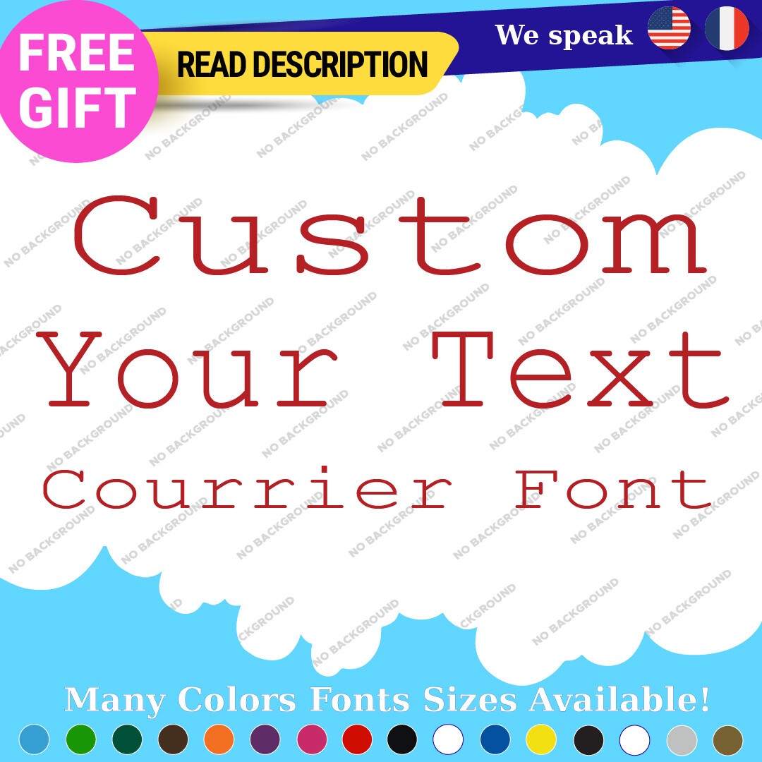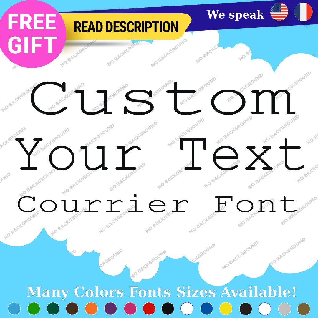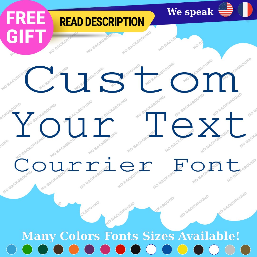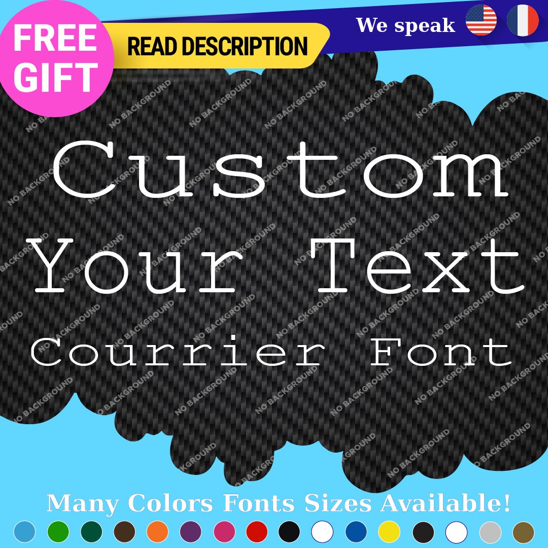 Introducing the Custom Courier Font Name Text Lettering Die Cut Decal Name Vinyl Sticker, a versatile and stylish addition to your vehicle or personal items. Priced between $8.65 and $11.65, this high-quality vinyl decal is manufactured by Oracal, ensuring durability and longevity with a five-year warranty. The decal features a custom image and text option, allowing you to personalize it to your preference. Designed for universal fitment, this sticker can be easily applied to various surfaces, including bumpers, windows, and headlights of cars, caravans, motorcycles, trailers, and vans. Available in an array of colors such as Black Glossy, Red, Gold Metallic, and many more, the decal comes in multiple finishes including matte, glossy, and metallic, enabling you to choose the perfect look that complements your style. With its self-adhesive attachment type, applying this decal is a hassle-free process. Elevate your vehicle’s aesthetic with this customizable lettering solution today.
