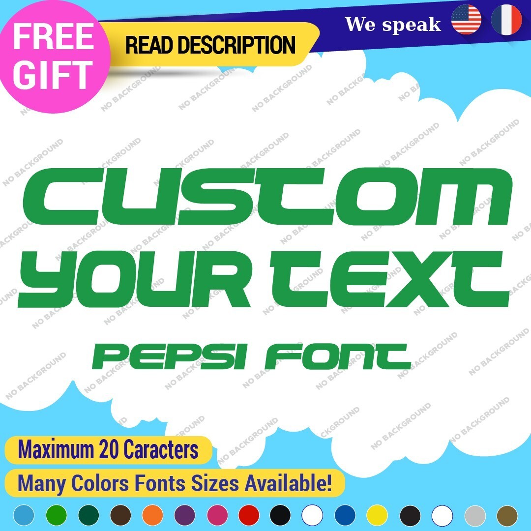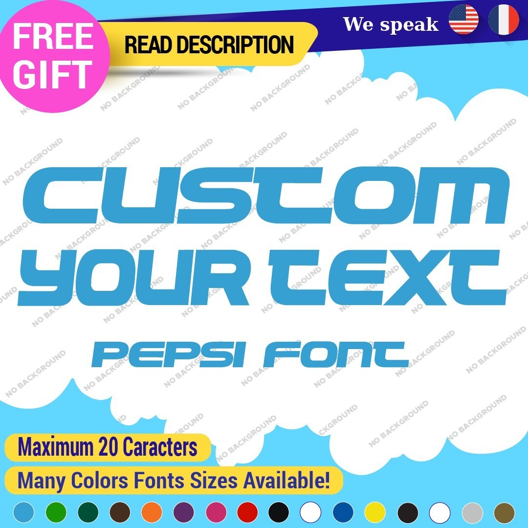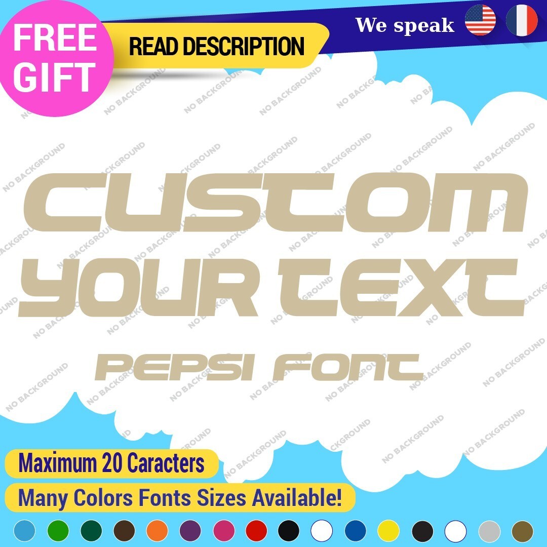 Enhance your vehicle’s style with our Custom Your Text Name Pepsi Fonts Lettering Die Cut Decals Vinyl Sticker 651. Made from high-quality Oracal vinyl, these customizable decals are perfect for various placements including bumpers and windows. Available in multiple colors and finishes, they offer a professional look with a 5-year warranty. Priced between $8.65 and $11.65, they are ideal for cars, motorcycles, and trailers.