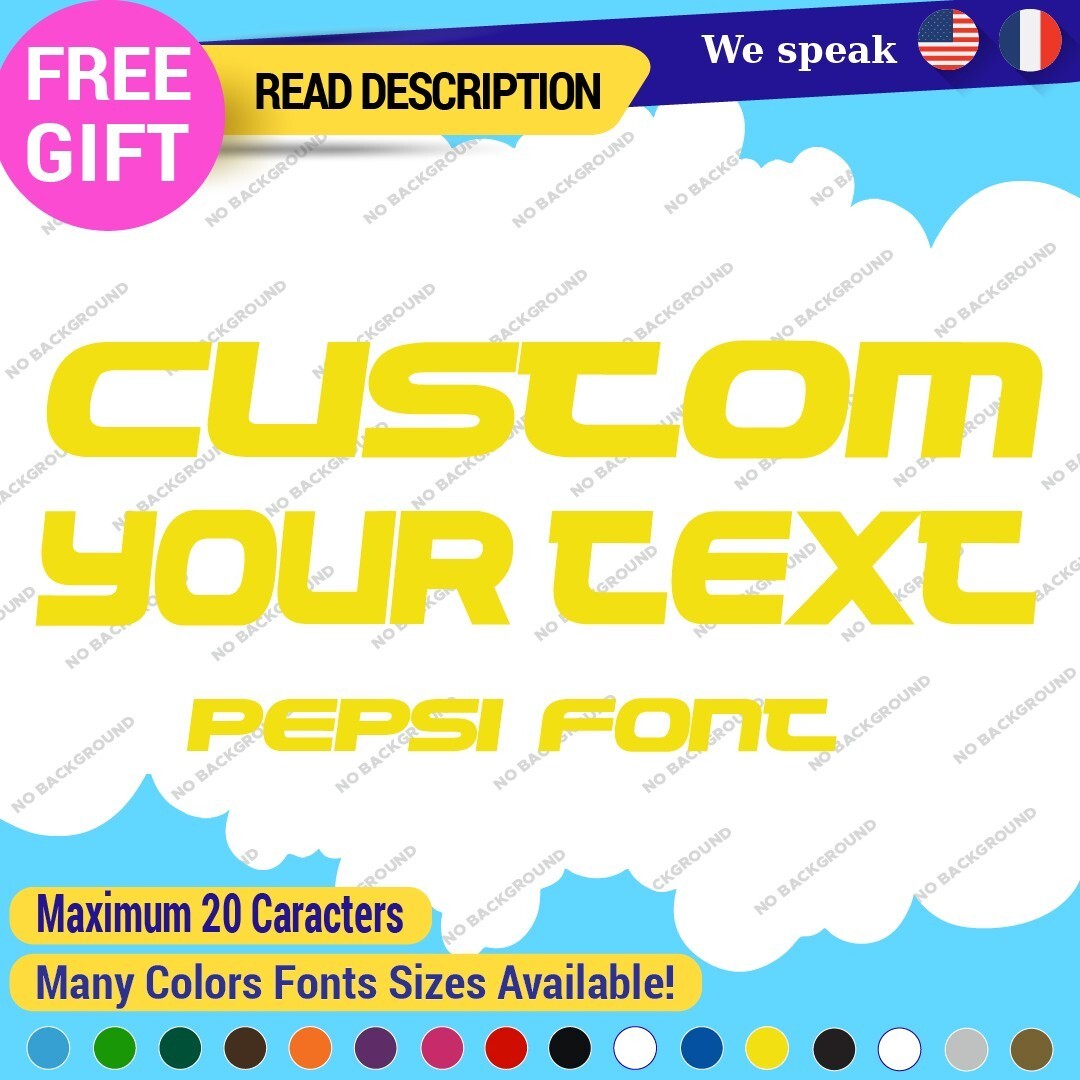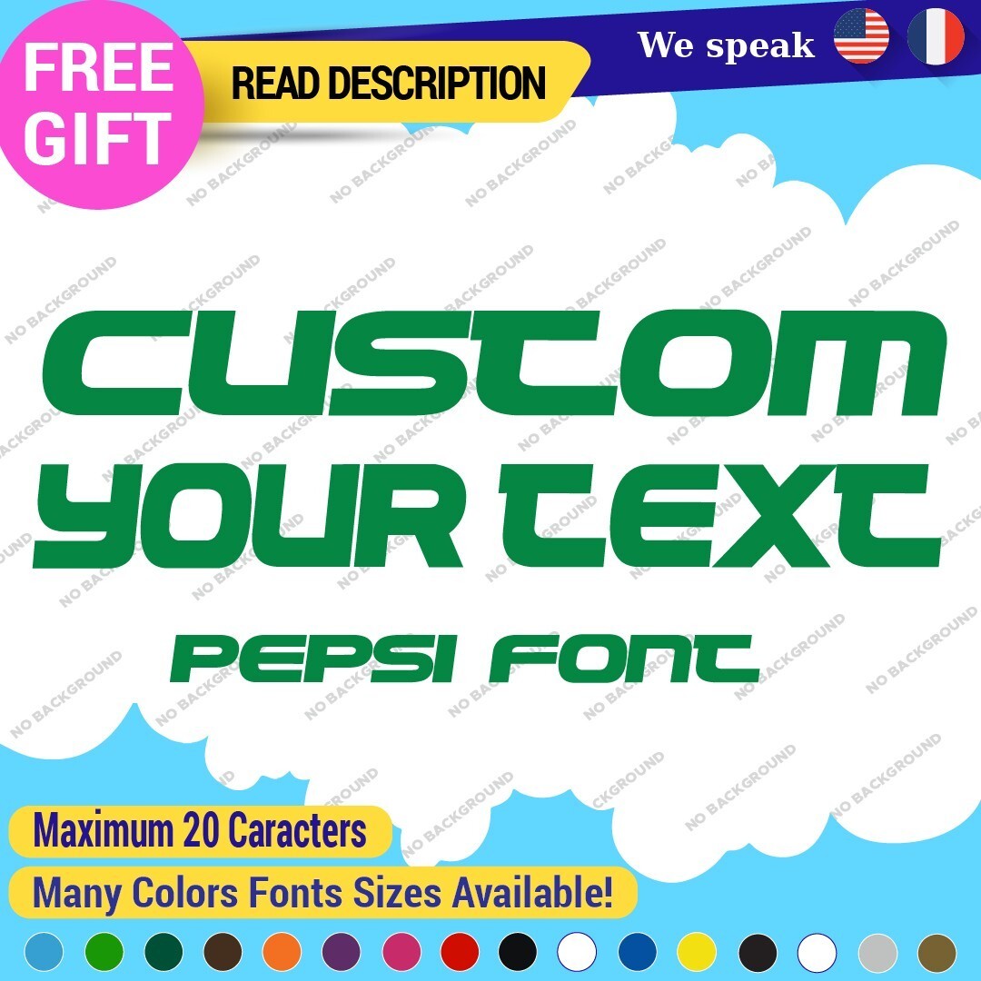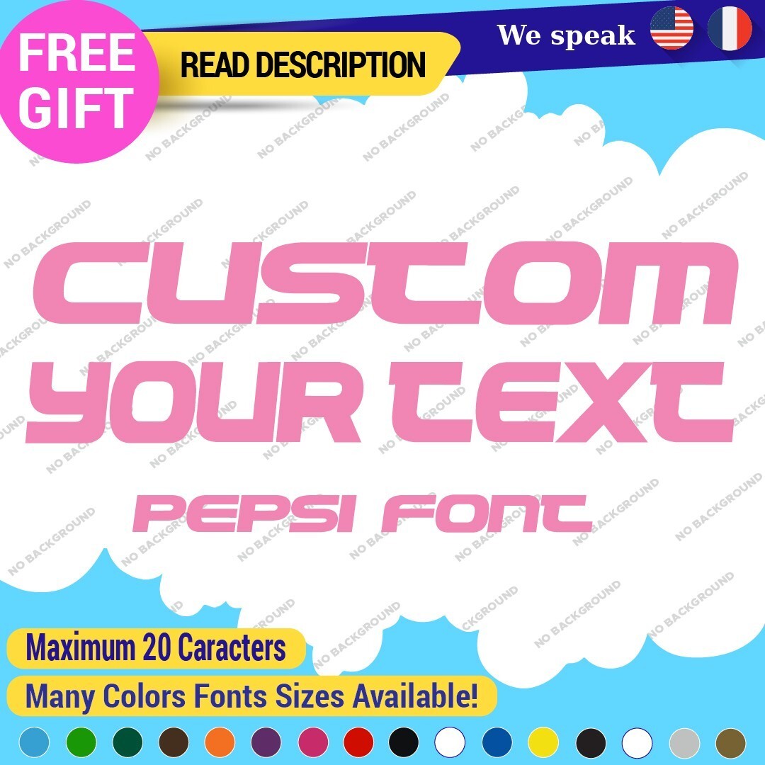 Enhance your vehicle’s style with our Custom Your Text Name Pepsi Fonts Lettering Die Cut Decals Vinyl Sticker 651. Made from high-quality Oracal vinyl, these customizable decals are perfect for various placements including bumpers and windows. Available in multiple colors and finishes, they offer a professional look with a 5-year warranty. Priced between $8.65 and $11.65, they are ideal for cars, motorcycles, and trailers.