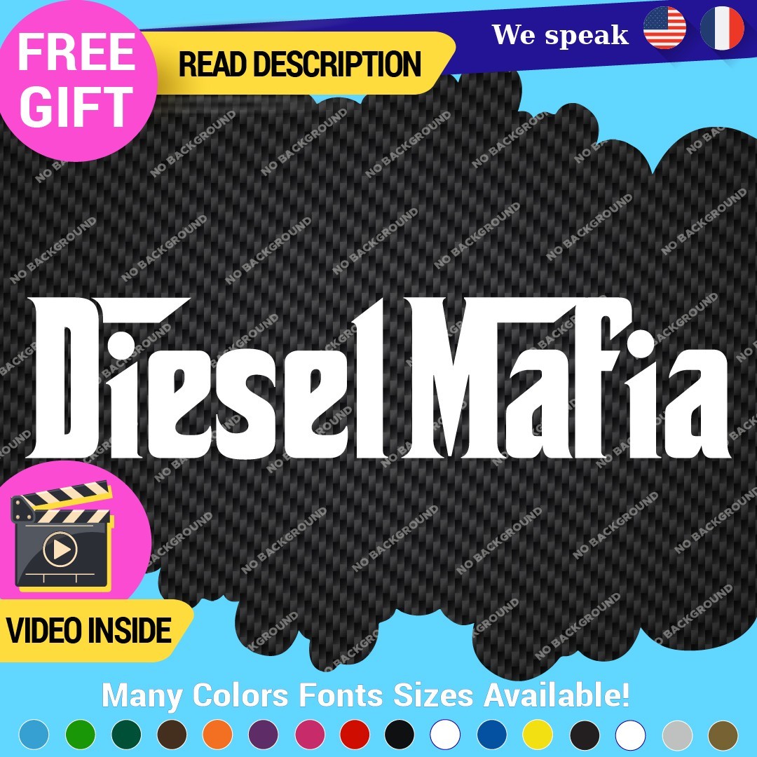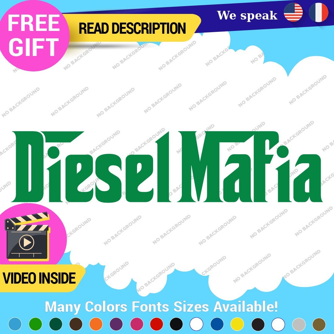 Introducing the Diesel Mafia Black Smoke Decals Stickers, the perfect accessory for diesel enthusiasts looking to enhance their vehicle’s aesthetic. Crafted from high-quality Oracal 651 vinyl, these custom die-cut decals are designed to withstand the rigors of outdoor conditions while maintaining their vibrant appearance. Available in various finishes including glossy, matte, and metallic, these decals can be applied to multiple surfaces such as bumpers, windows, and fuel tanks, allowing for versatile customization of cars, trucks, motorcycles, and more. Measuring up to 14 inches on the longest side, these decals can be tailored with custom images and text to reflect your unique style. With a self-adhesive backing, they are easy to apply and remove, making them an excellent choice for those who love to personalize their vehicles. Proudly made in Canada and backed by a 5-year manufacturer warranty, these decals combine quality with style, making them a must-have for any diesel truck owner.