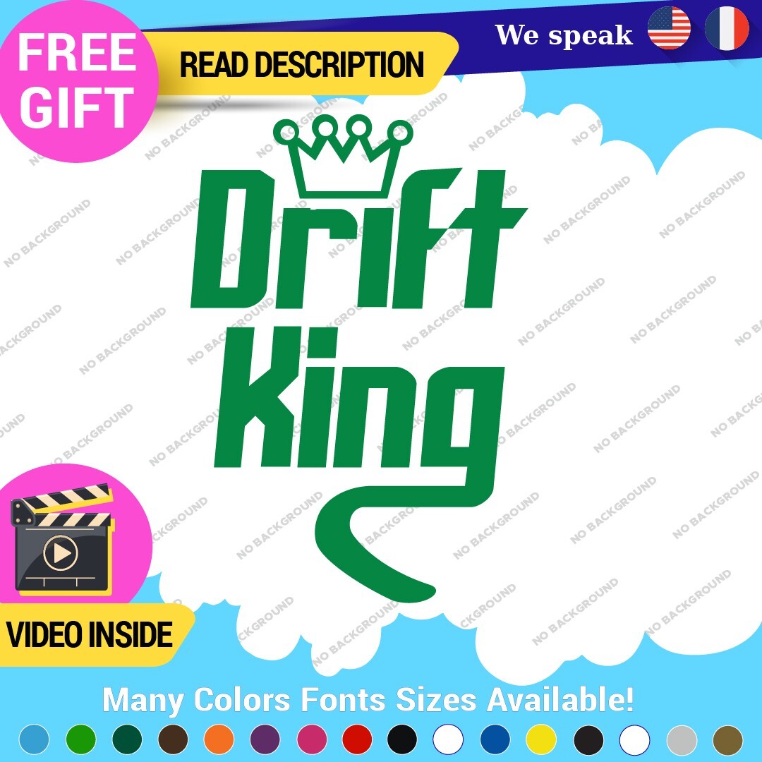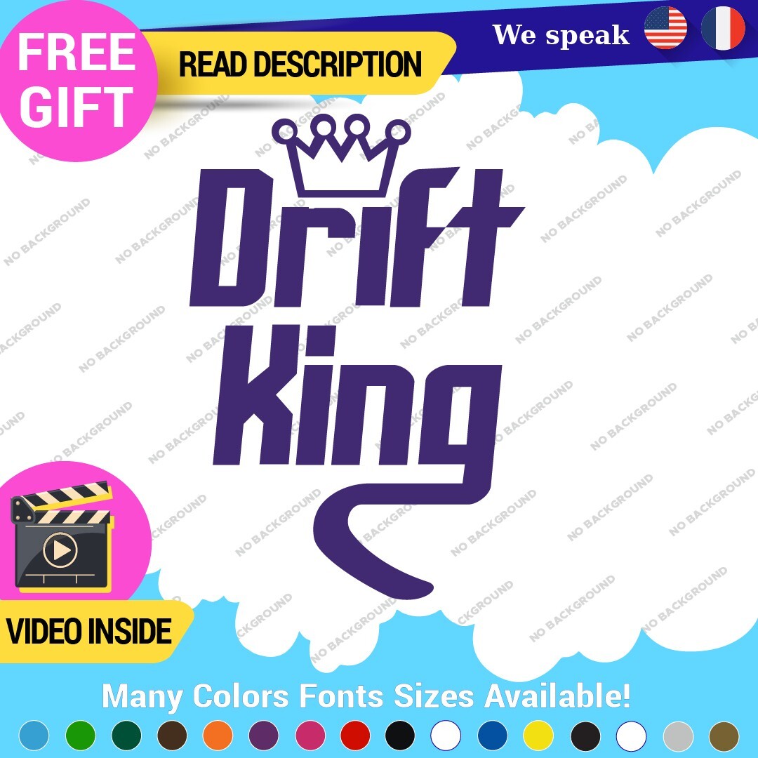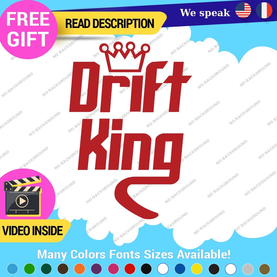 Enhance your vehicle’s style with the Drift King Decal Sticker, designed for JDM enthusiasts. Made from durable vinyl, this self-adhesive sticker is suitable for various placements on cars, motorcycles, and trailers. Available in multiple colors and finishes, it offers a custom look with a five-year warranty. Perfect for showcasing your love for racing and tuning.