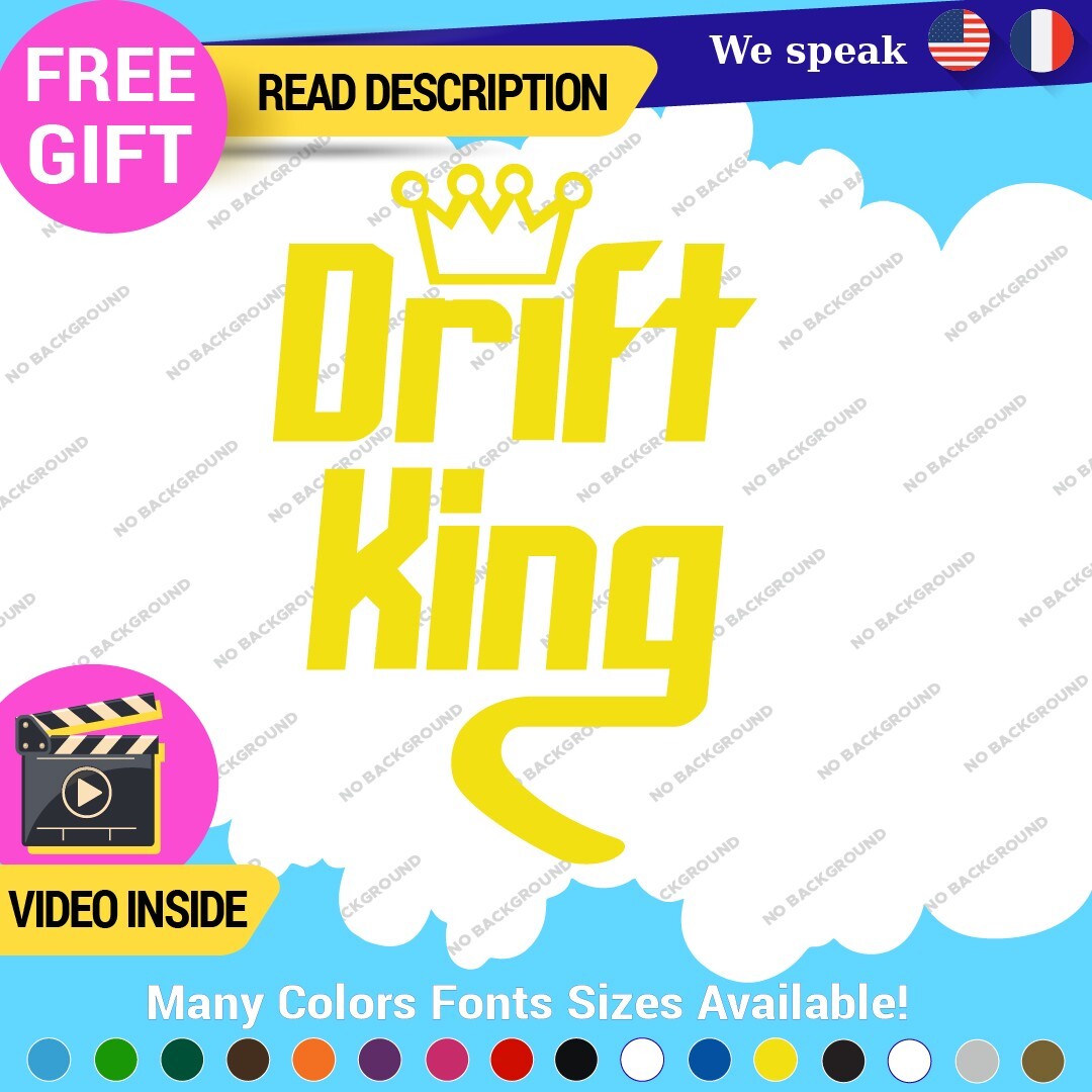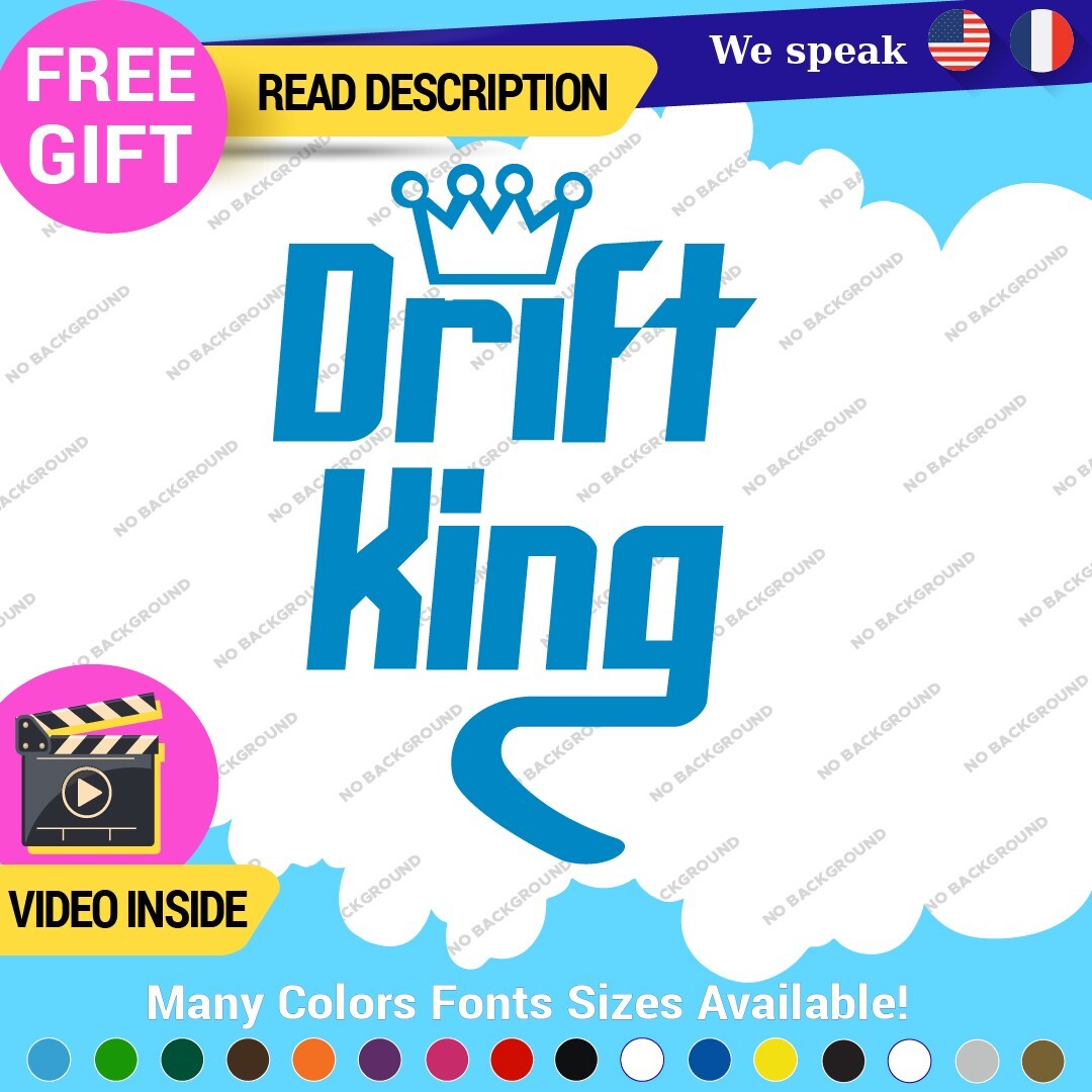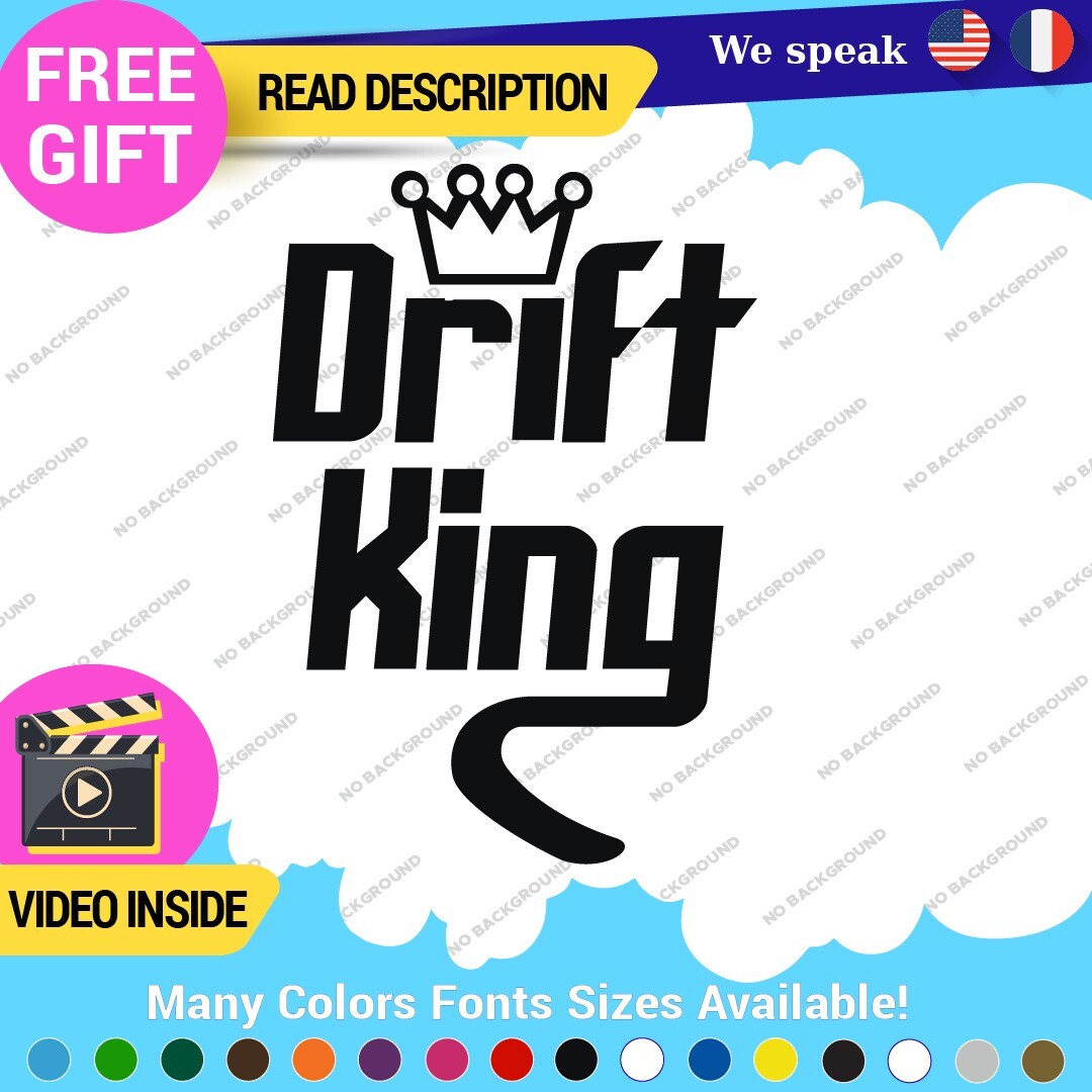 Enhance your vehicle’s style with the Drift King Decal Sticker, designed for JDM enthusiasts. Made from durable vinyl, this self-adhesive sticker is suitable for various placements on cars, motorcycles, and trailers. Available in multiple colors and finishes, it offers a custom look with a five-year warranty. Perfect for showcasing your love for racing and tuning.