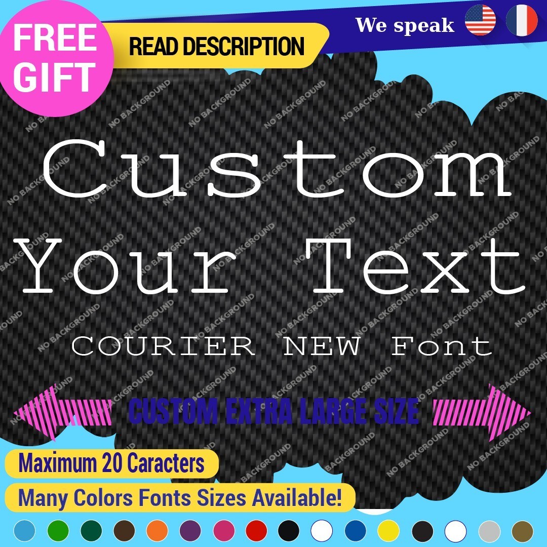 Introducing our Extra Large Custom Text Name Courier New Font Lettering Decals Vinyl Stickers, designed for versatility and personalization. Crafted from high-quality Oracal vinyl, these customizable decals feature a range of finishes and sizes from 16” to 30”. Ideal for various vehicle placements, they showcase your unique style with ease. With a 5-year manufacturer warranty and universal fitment, transform your car, motorcycle, or trailer today. Available in a variety of colors to suit your preference.
