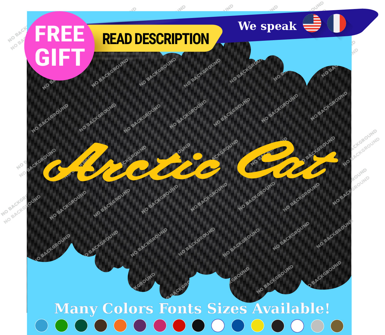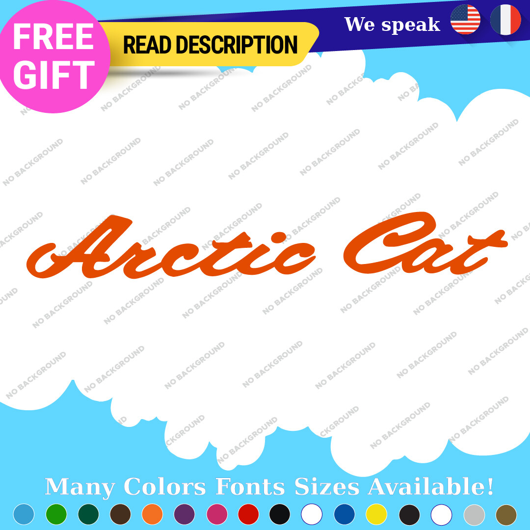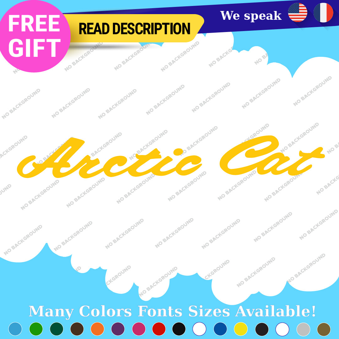 Introducing the Fits Arctic Large Cat Script Decals Stickers, expertly crafted from high-quality vinyl to enhance your snowmobile experience. Priced between $17.95 and $37.95, these decals offer exceptional value for enthusiasts seeking to personalize their vehicles. Designed for a variety of applications, these stickers are suitable for cars, caravans, motorcycles, trailers, and more, allowing for versatile placement on bumpers, windows, and even headlights. Manufactured by Oracal in Canada, the decals feature a self-adhesive design for easy application and a durable finish that includes options such as glossy, matte, and carbon fiber textures. With dimensions ranging from 16 to 36 inches on the longest side, you can select the perfect size for your needs. Each decal is customizable with your choice of color and text, ensuring a unique touch that reflects your personality. Backed by a five-year warranty, these decals promise longevity and style for any vehicle. Elevate your ride with these distinctive script decals today.