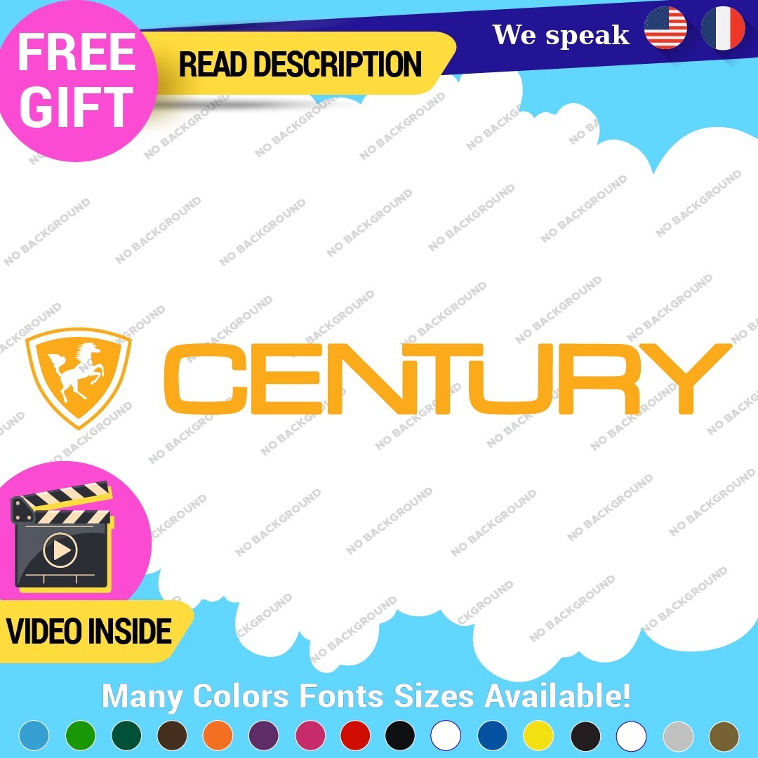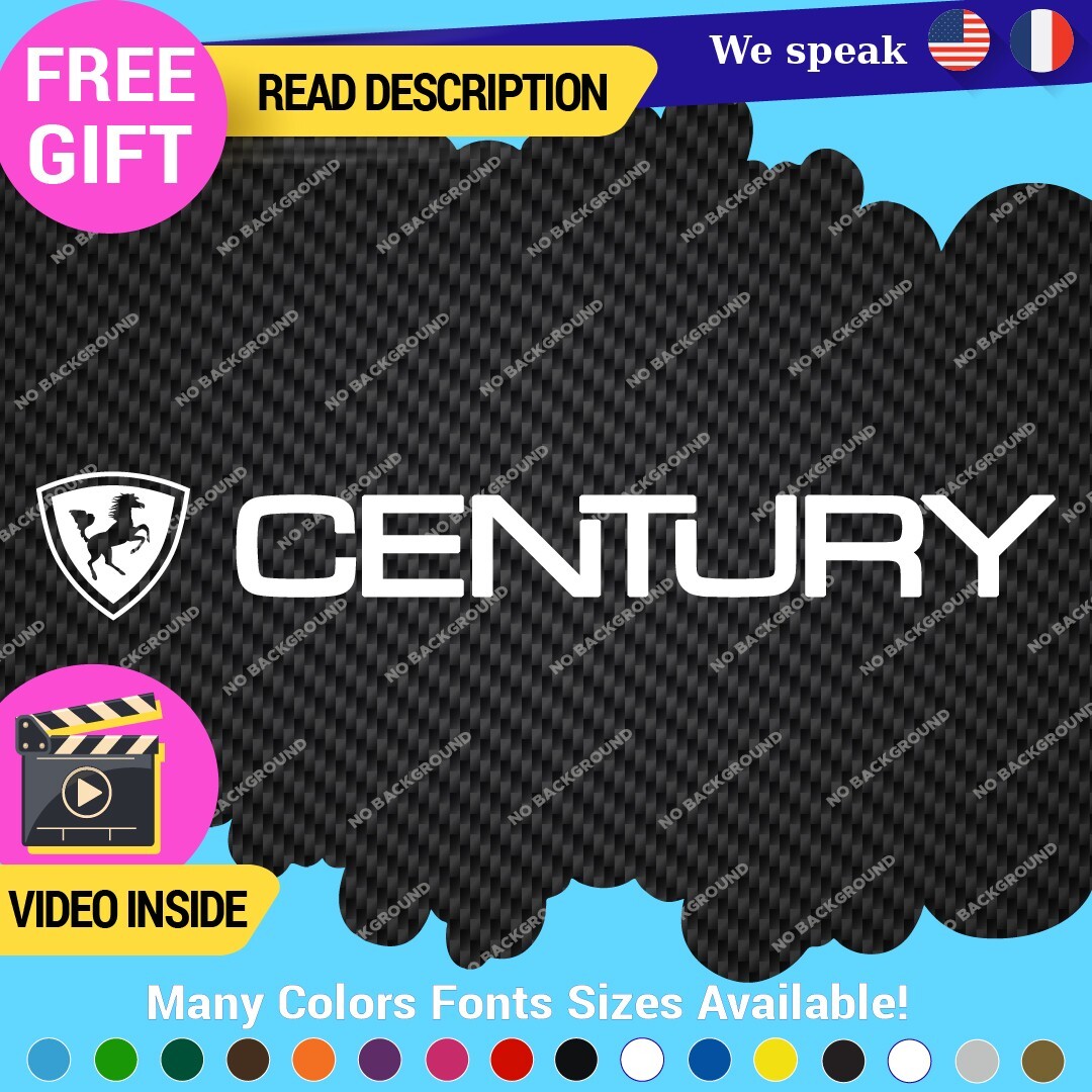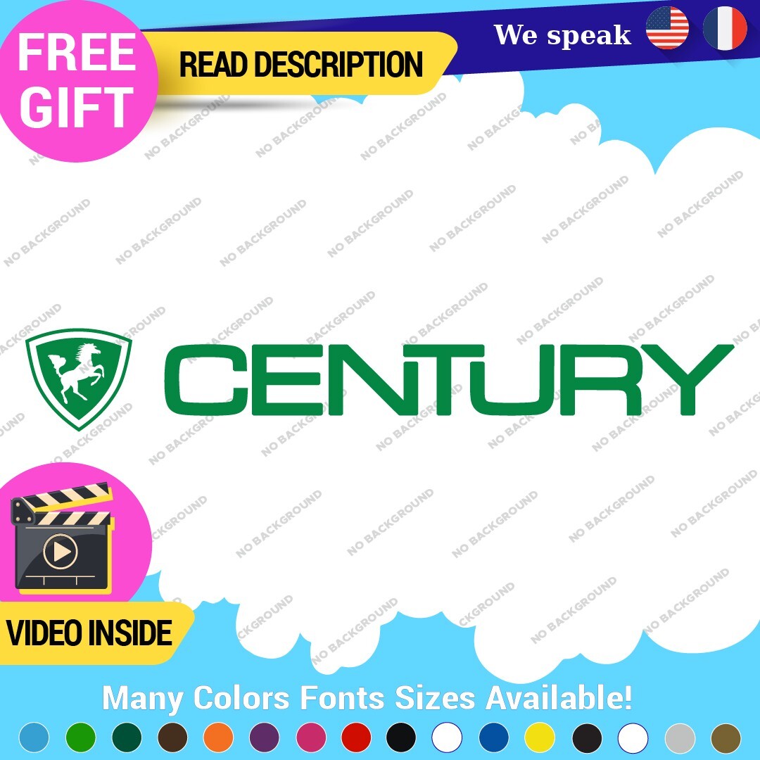 Enhance your boating experience with the Fits Century Boat Decals Vinyl Stickers. Designed for versatility, these high-quality vinyl stickers are perfect for various surfaces including cars, trailers, and boats. Available in multiple colors and finishes, they feature a durable self-adhesive backing and a 5-year warranty, ensuring long-lasting appeal. Customize with your own image or text to showcase your unique style. Upgrade your vessel’s aesthetic effortlessly with these eye-catching graphics, priced between $8.65 and $11.65.