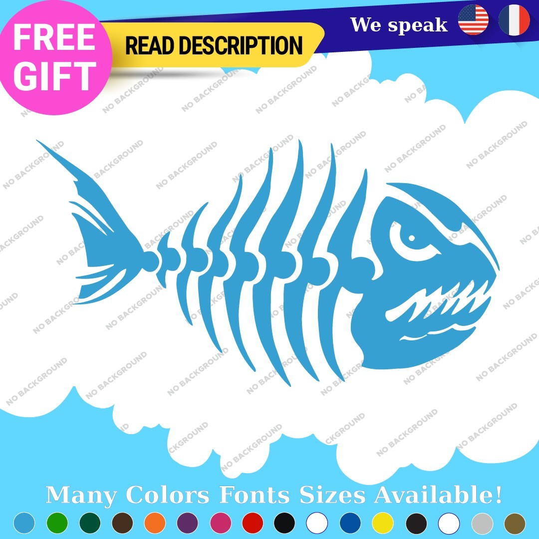 Enhance your outdoor adventure with the Fits Fishing Bass Bones Skull Skeleton Fish Sticker. Crafted from high-quality Oracal 651 vinyl, this durable and die-cut decal is perfect for kayaks, boats, and vehicles. Available in various colors and sizes, it offers a unique way to showcase your passion for fishing. Its self-adhesive design ensures easy application on multiple surfaces, making it a versatile choice for any enthusiast. Add a touch of personality to your gear and stand out on the water with this striking graphic sticker.
