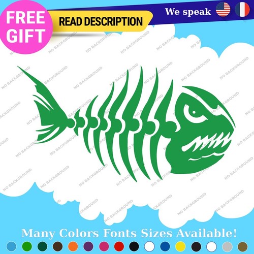 Fits Fishing Bass Bones Skull Skeleton Fish Sticker Vinyl Decal Kayak Boat Angry