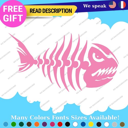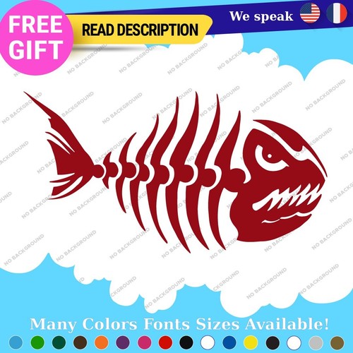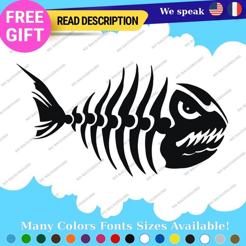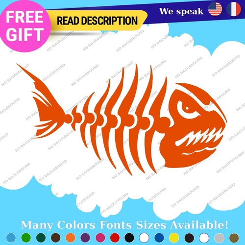 Fits Fishing Skull Skeleton Bass Bones Fish Sticker Vinyl Decal Kayak Boat Angry
