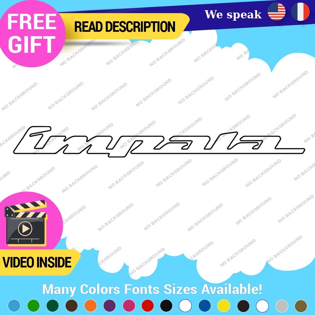 Enhance your vehicle's appearance with the Fits Large Impala Chevrolet Decal Sticker. This customizable vinyl decal is perfect for various placements including bumpers, windows, and tailgates. Available in multiple colors and finishes, it features a durable adhesive for long-lasting use. Suitable for cars, motorcycles, and trailers, this decal is a stylish way to showcase your Chevrolet pride. Enjoy a 5-year warranty for added peace of mind. Priced between $16.95 and $30.95, it combines quality and affordability.