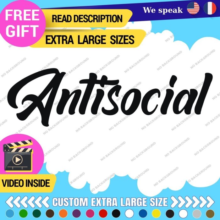 Introducing the Fits Large Antisocial Windshield Banner Stickers Decals, a perfect addition for automotive enthusiasts looking to make a bold statement. Designed specifically for the JDM community, these high-quality vinyl decals are available at a price range of $16.95 to $30.95. Manufactured by Oracal, these stickers are die-cut for precision and feature customizable options for both image and text, allowing you to express your unique style. The banners can be applied to various vehicle surfaces, including bumpers, windows, and hoods, ensuring versatile placement. With a range of colors such as matte black, glossy white, vibrant reds, and metallic finishes, you can choose the ideal shade to match your vehicle’s aesthetics. Each decal is constructed from durable vinyl material, ensuring longevity with a five-year manufacturer warranty. These self-adhesive stickers are suitable for cars, motorcycles, trailers, and more, making them a universal fit for any vehicle. Elevate your ride’s personality with these striking antisocial decals.