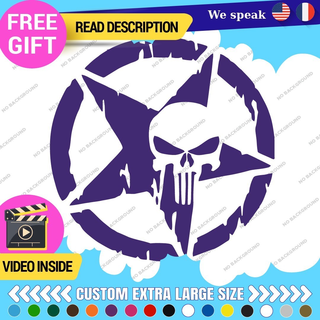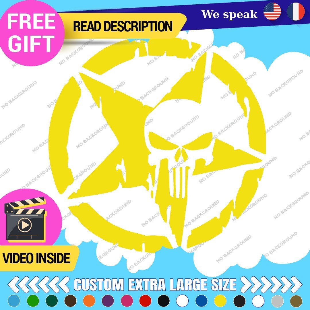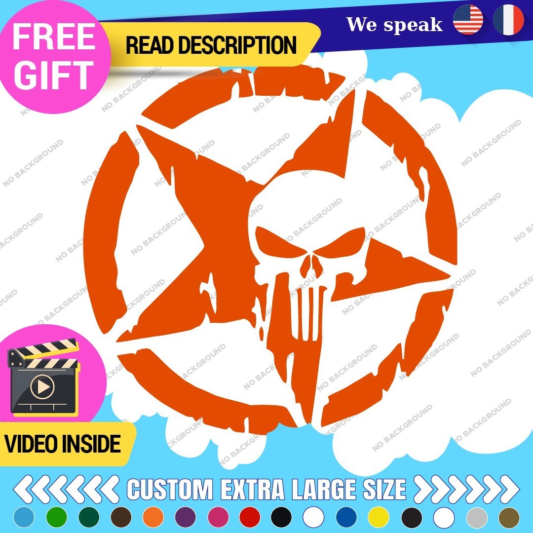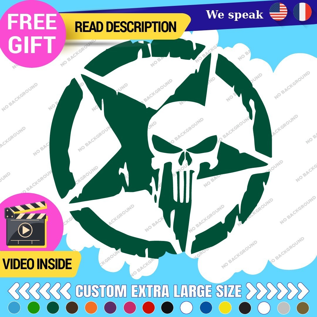 Introducing the Fits Large Army Star Punisher Sticker Vinyl Decal, a striking addition to your vehicle that embodies military spirit and personal expression. Designed for trucks, this high-quality vinyl decal is perfect for those looking to enhance their vehicle’s appearance while showcasing their unique style. Priced between $16.95 and $22.95, it offers excellent value for a durable product that is built to last. Manufactured by Oracal in Canada, the decal features a range of color options including Beige, Black Glossy, Blue, and more, allowing you to choose the perfect match for your vehicle. Its versatile design enables placement on various surfaces such as the hood, doors, bumpers, and windows. The die-cut feature ensures a clean finish, while the self-adhesive attachment makes installation a breeze. With a manufacturer warranty of 5 years, this decal combines aesthetics with reliability, making it an ideal choice for car enthusiasts and military supporters alike.