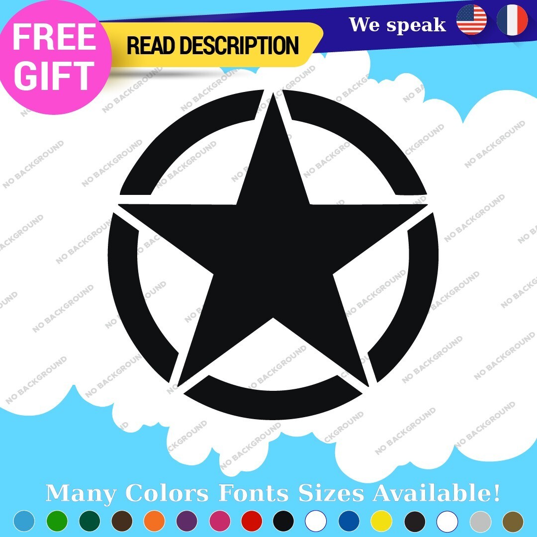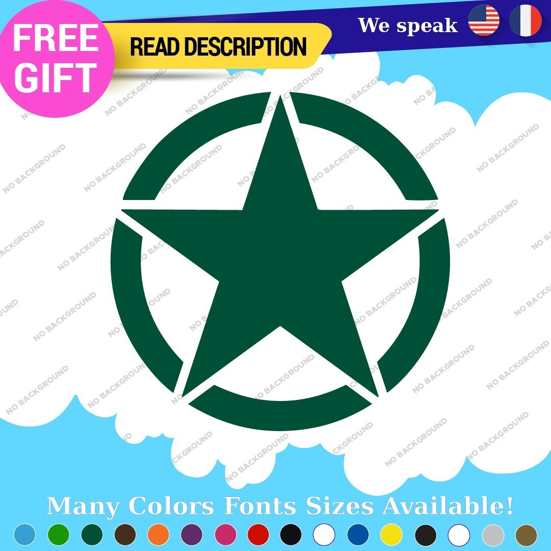 Enhance the aesthetic and identity of your vehicle with the Large Army Star Sticker Vinyl Decal, specifically designed for Jeep and US Military trucks. Priced between $16.95 and $22.95, this high-quality decal showcases your passion for military heritage and rugged outdoor adventures. Manufactured by Oracal, this die-cut vinyl decal features options for custom images and text, allowing you to personalize your vehicle to reflect your unique style. The self-adhesive design ensures easy application on various surfaces, including bumpers, hoods, and windows. With dimensions ranging from 16 to 22 inches on the longest side, it fits perfectly on any vehicle, including cars, caravans, and motorcycles. Available in a variety of colors and finishes, such as glossy, matte, and metallic, you can choose the perfect look to complement your vehicle. Backed by a 5-year warranty, this durable vinyl decal is made in Canada and is built to withstand the elements while maintaining its striking appearance.