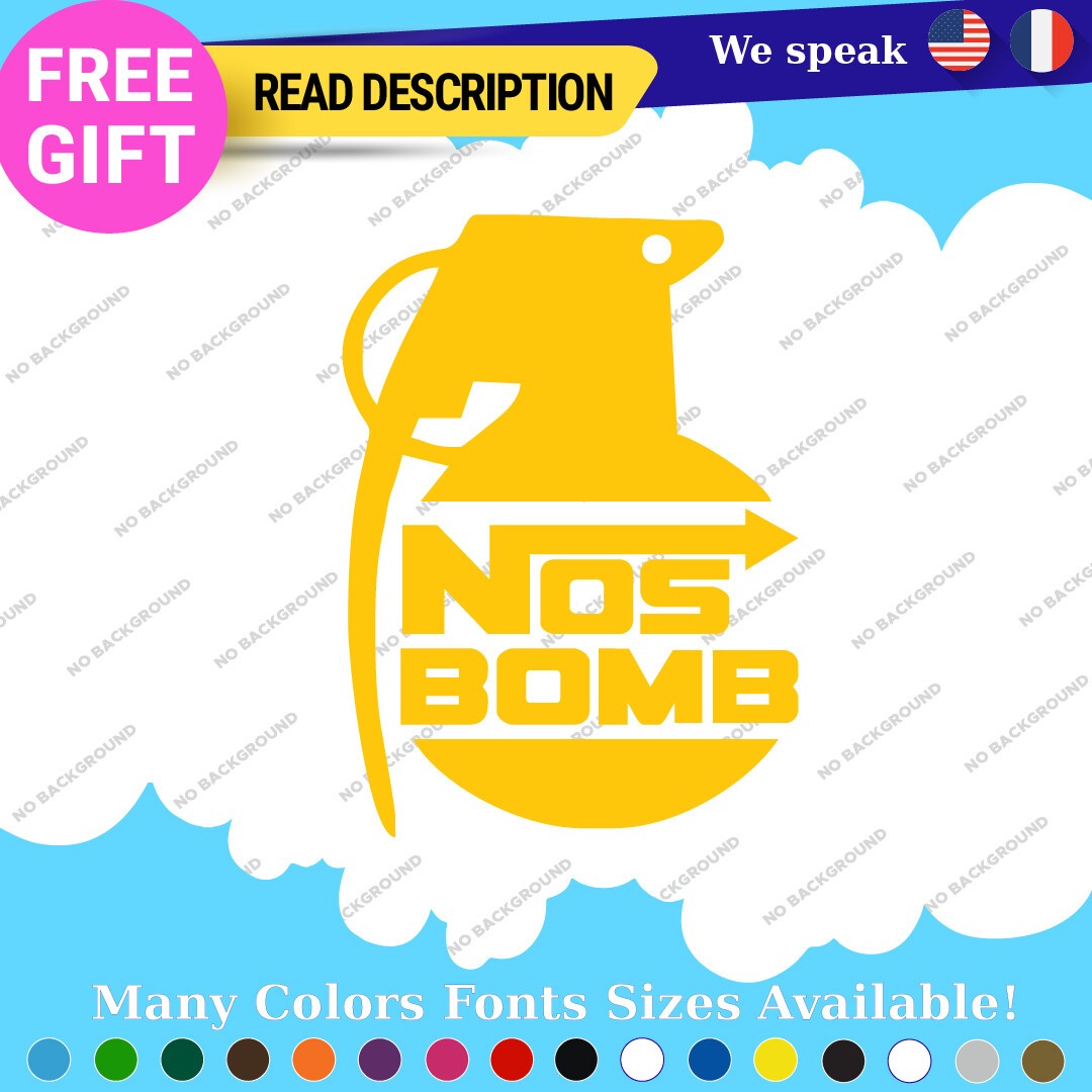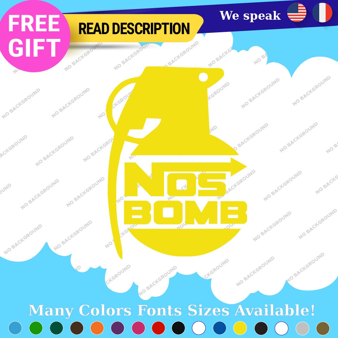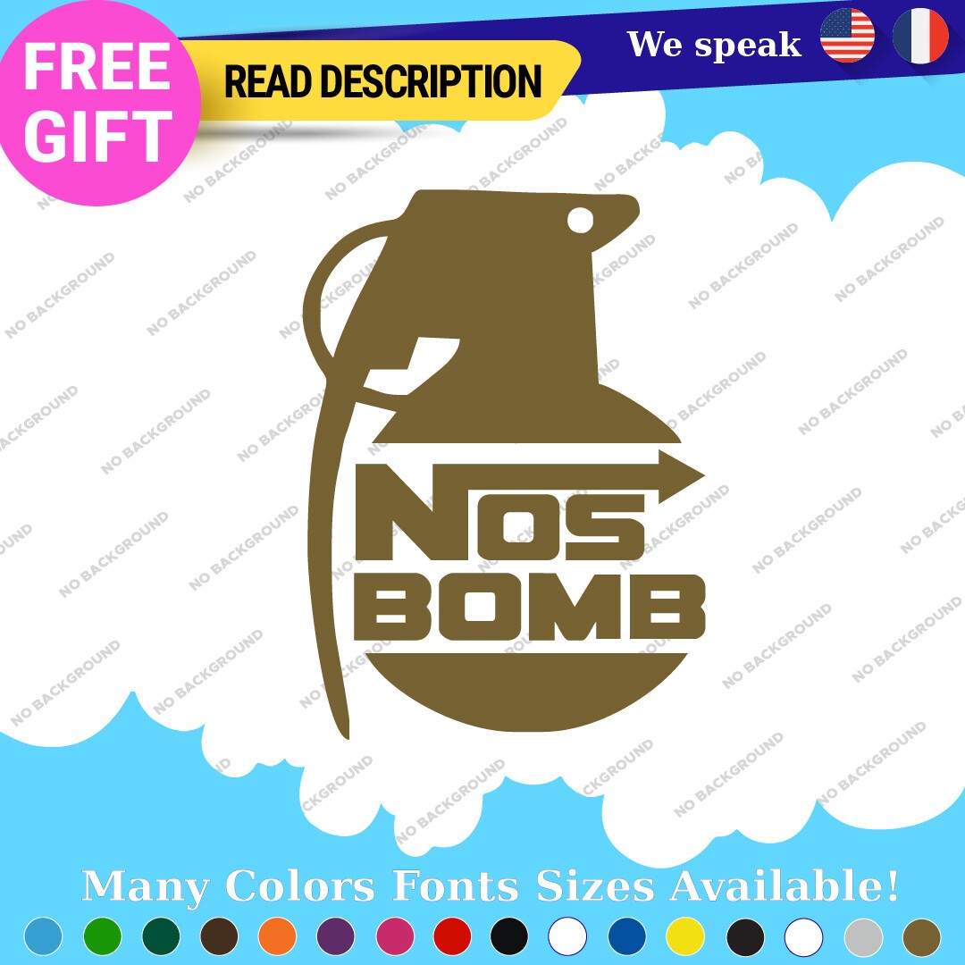 Elevate your vehicle’s aesthetic with the Fits NOS Bomb Stickers Decal, designed for JDM enthusiasts who appreciate the art of customization. Priced between $8.65 and $10.65, this premium vinyl decal offers a unique blend of style and durability, making it an ideal choice for car, caravan, motorcycle, trailer, and van owners. Manufactured in Canada, the decal features a self-adhesive backing for easy application on various surfaces, including bumpers, windows, and headlights. Crafted from high-quality Oracal vinyl, it is available in a variety of striking colors such as Black Glossy, Red, and Gold Metallic, ensuring a perfect match for any vehicle. With dimensions ranging from 8 to 12 inches on the longest side, this die-cut decal is customizable with images or text, allowing you to express your individuality. Backed by a 5-year warranty, the Fits NOS Bomb Stickers Decal combines functionality with a vibrant, graphic theme, making it a must-have for any JDM car enthusiast looking to enhance their ride.
