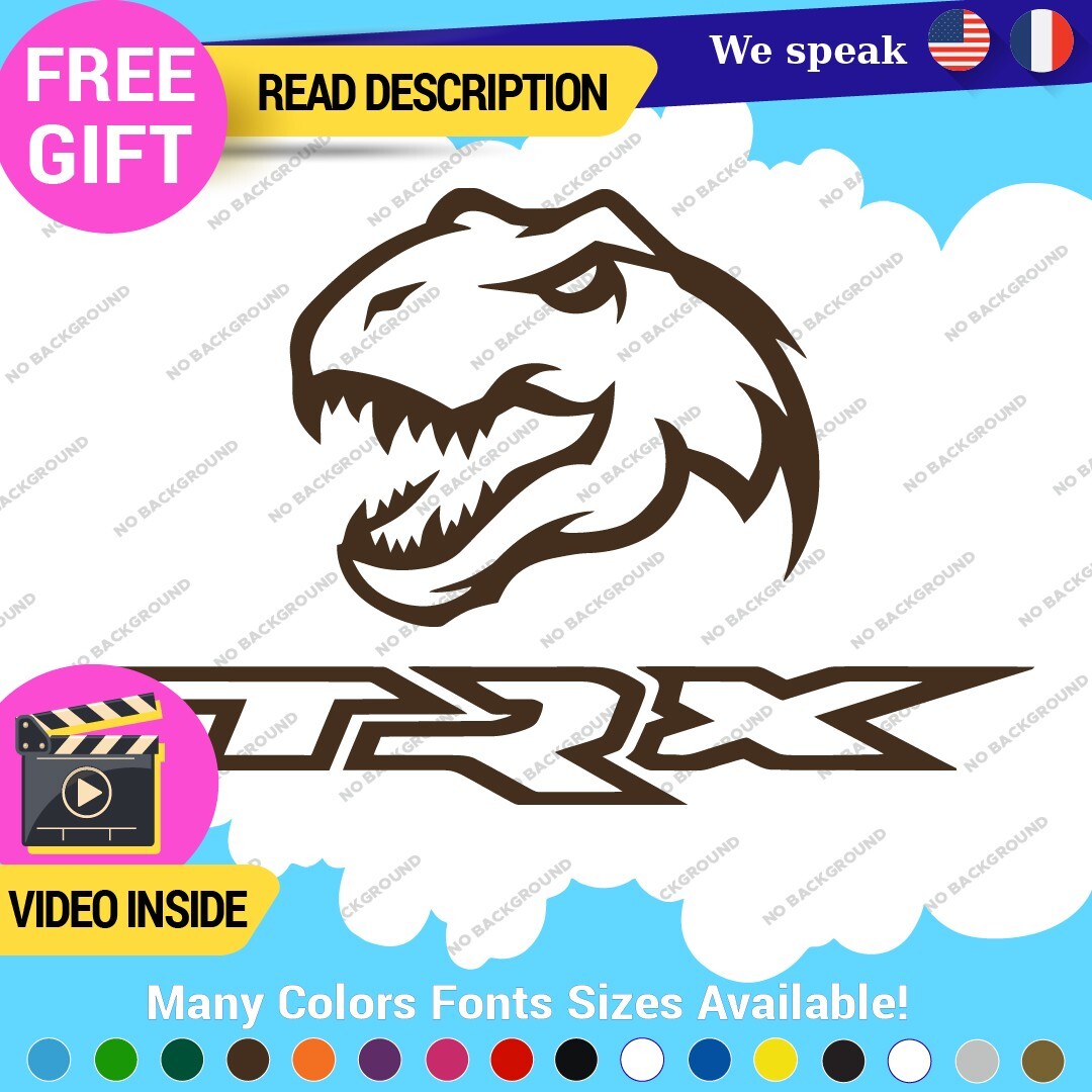 Introducing the Fits TRX Dinosaur Left T-Rex Side Decal Sticker, a striking vinyl accessory designed to elevate the aesthetic of your truck. Priced competitively between $8.65 and $11.65, this decal is expertly crafted from high-quality Oracal vinyl, ensuring durability and a long-lasting finish. With a universal fitment, it is perfect for a variety of vehicles including trucks, caravans, motorcycles, and trailers. The adhesive application allows for easy installation on various surfaces such as bumpers, windows, and tailgates, making personalization effortless. Available in an array of vibrant colors including glossy black, dark red, and metallic gold, this decal adds a touch of personality and flair to your vehicle. Measuring up to 14 inches on the longest side, the T-Rex design is both eye-catching and unique. Backed by a 5-year manufacturer warranty, this decal sticker is not only a fun addition but a reliable choice for any vehicle enthusiast looking to stand out on the road.