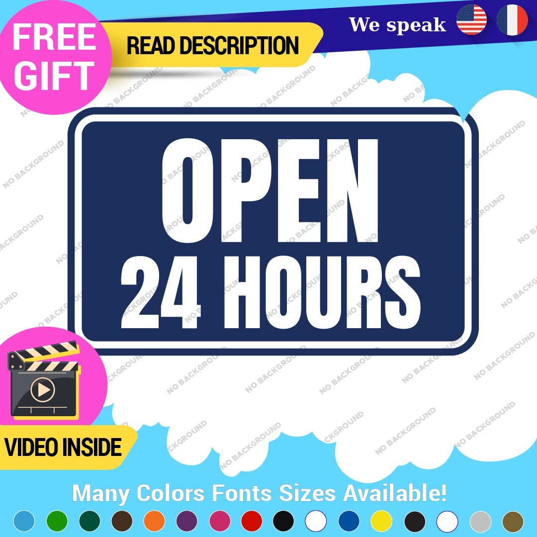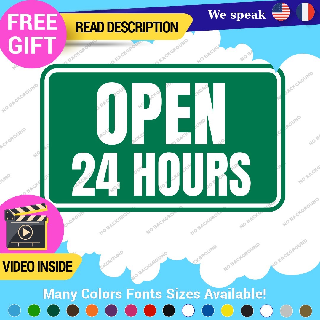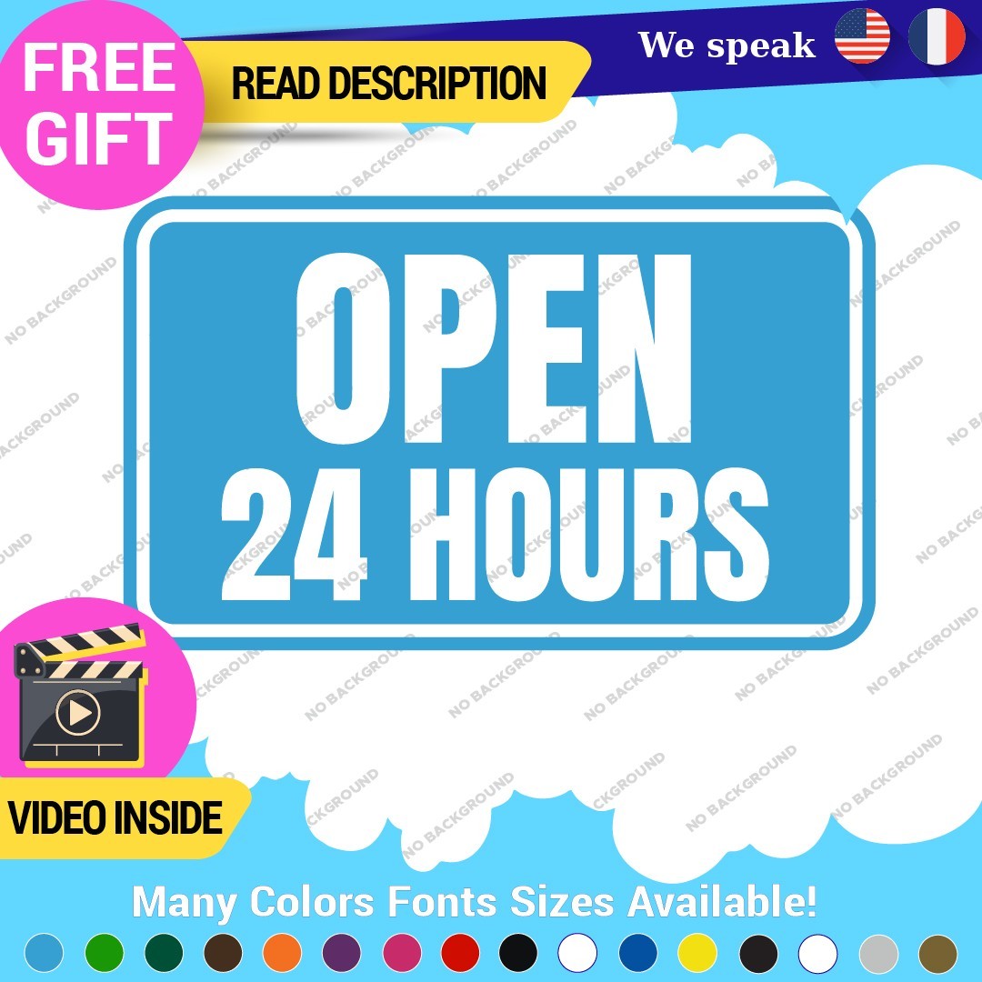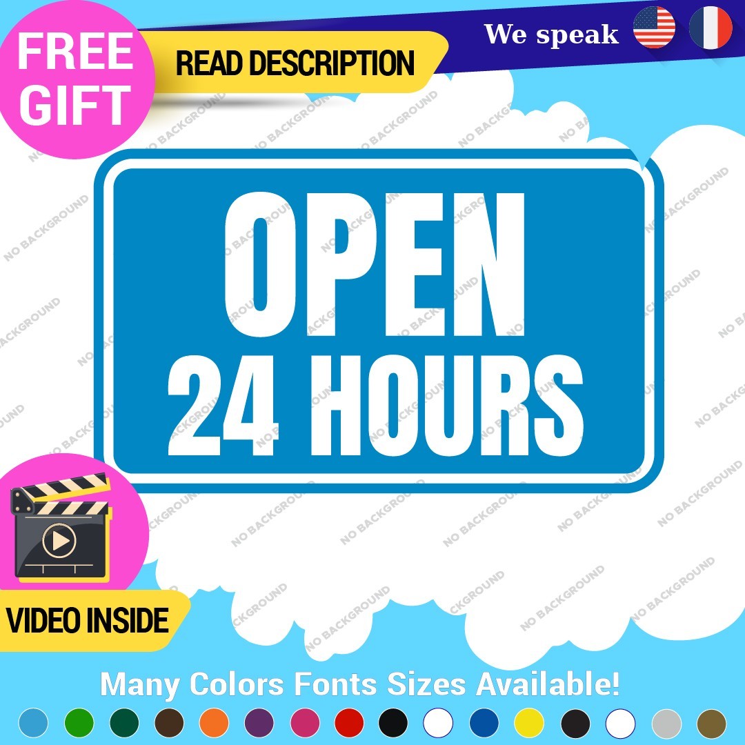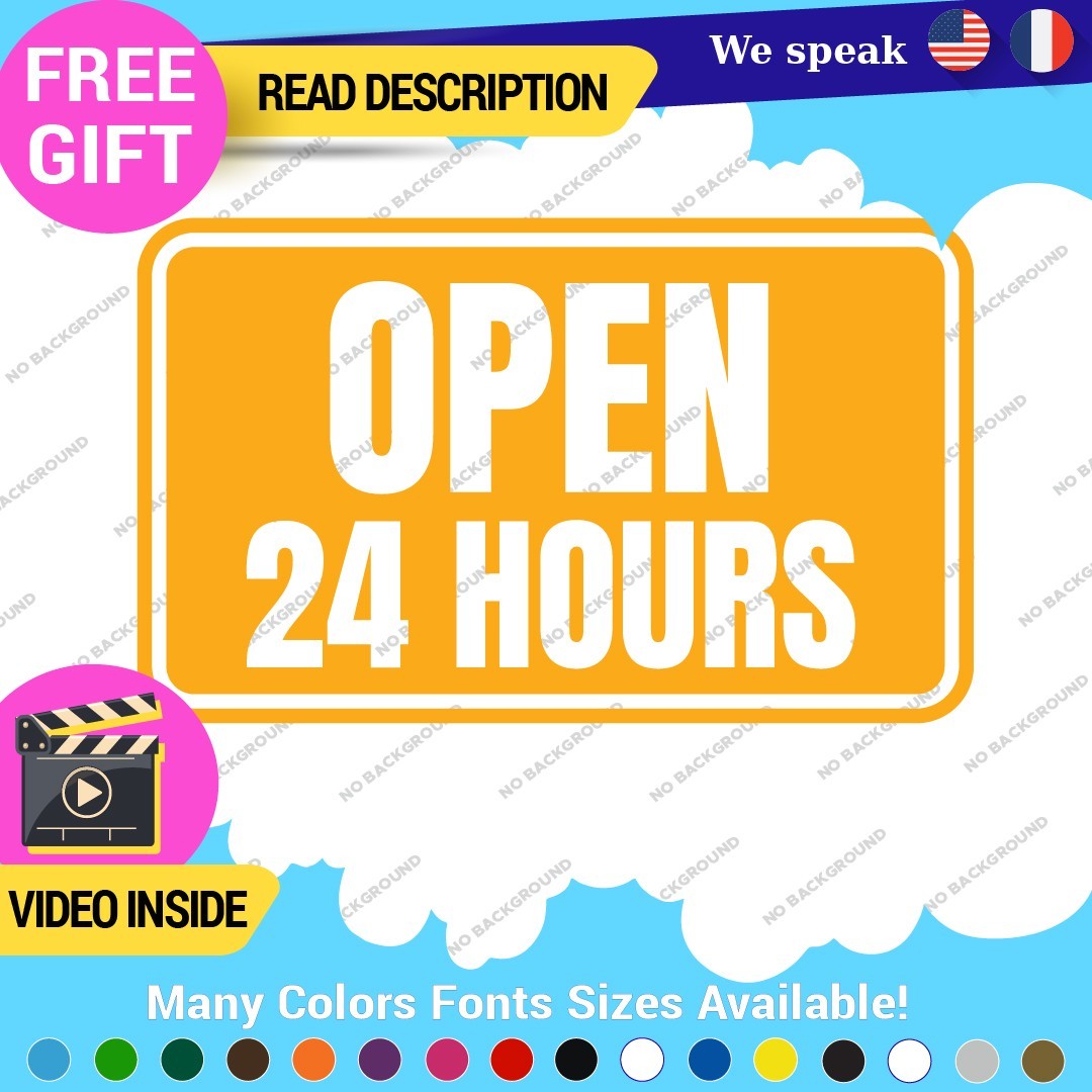 Tags: Business Stickers, Customizable Signage, Open 24 Hours Sign, Store Front Decor, Vinyl Decals