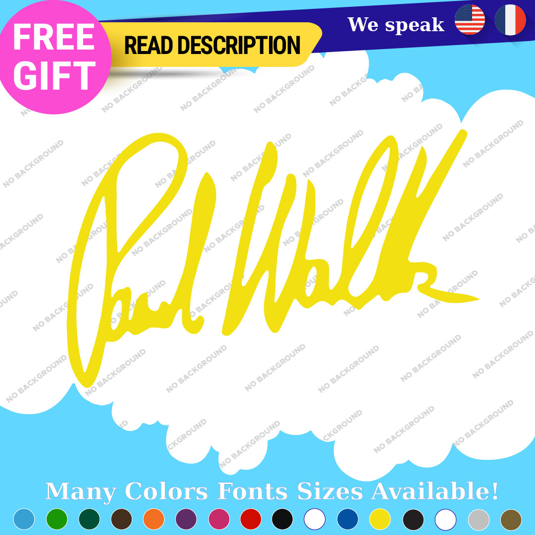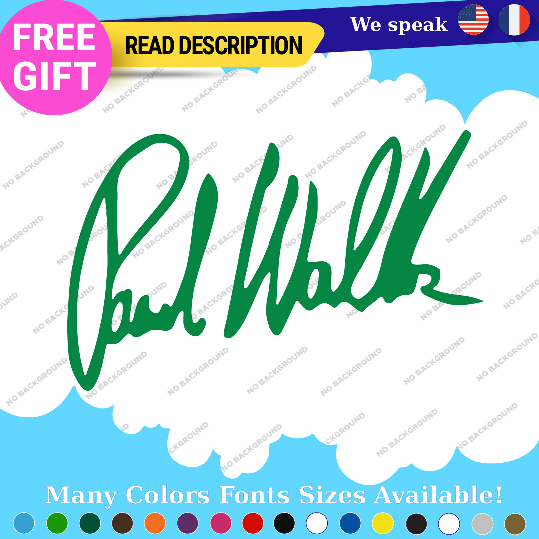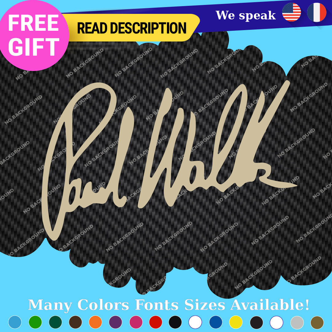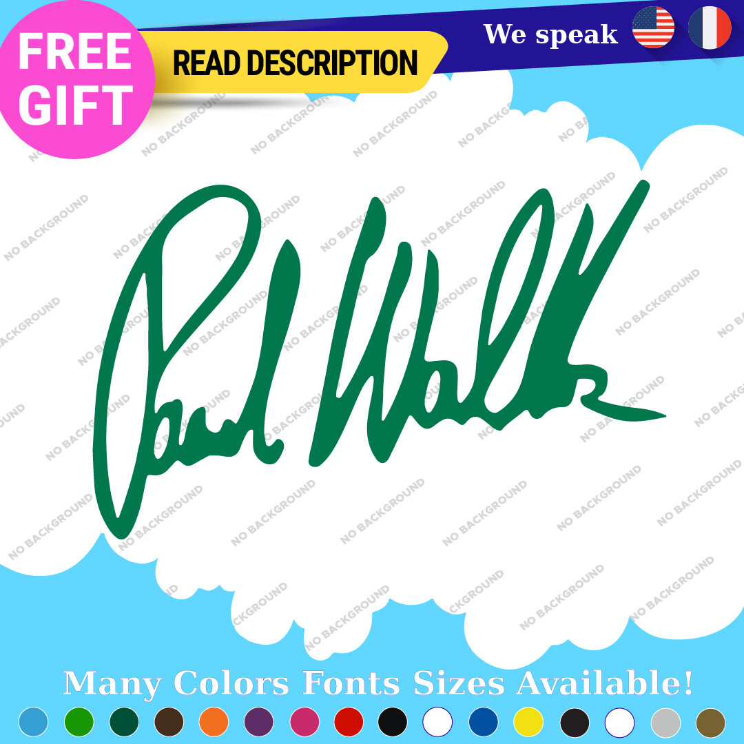 Celebrate the legacy of Paul Walker with our premium vinyl autograph decals. Available in various sizes and colors, these custom die-cut stickers are perfect for adorning your car, motorcycle, or trailer. With a durable self-adhesive design and a 5-year warranty, they offer a stylish way to showcase your passion for racing and the Fast and Furious franchise. Priced affordably between $8.65 and $10.95, they are a must-have for fans and collectors alike.