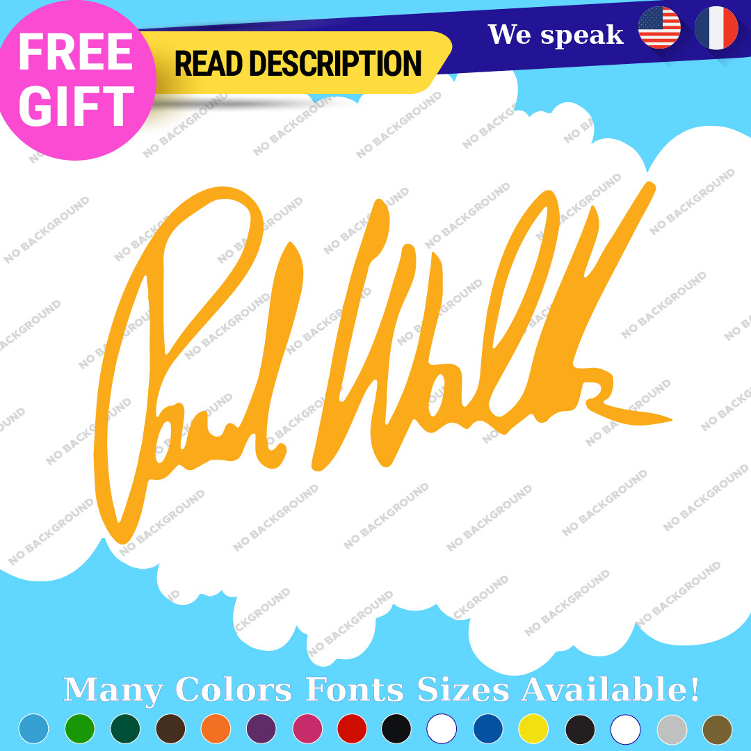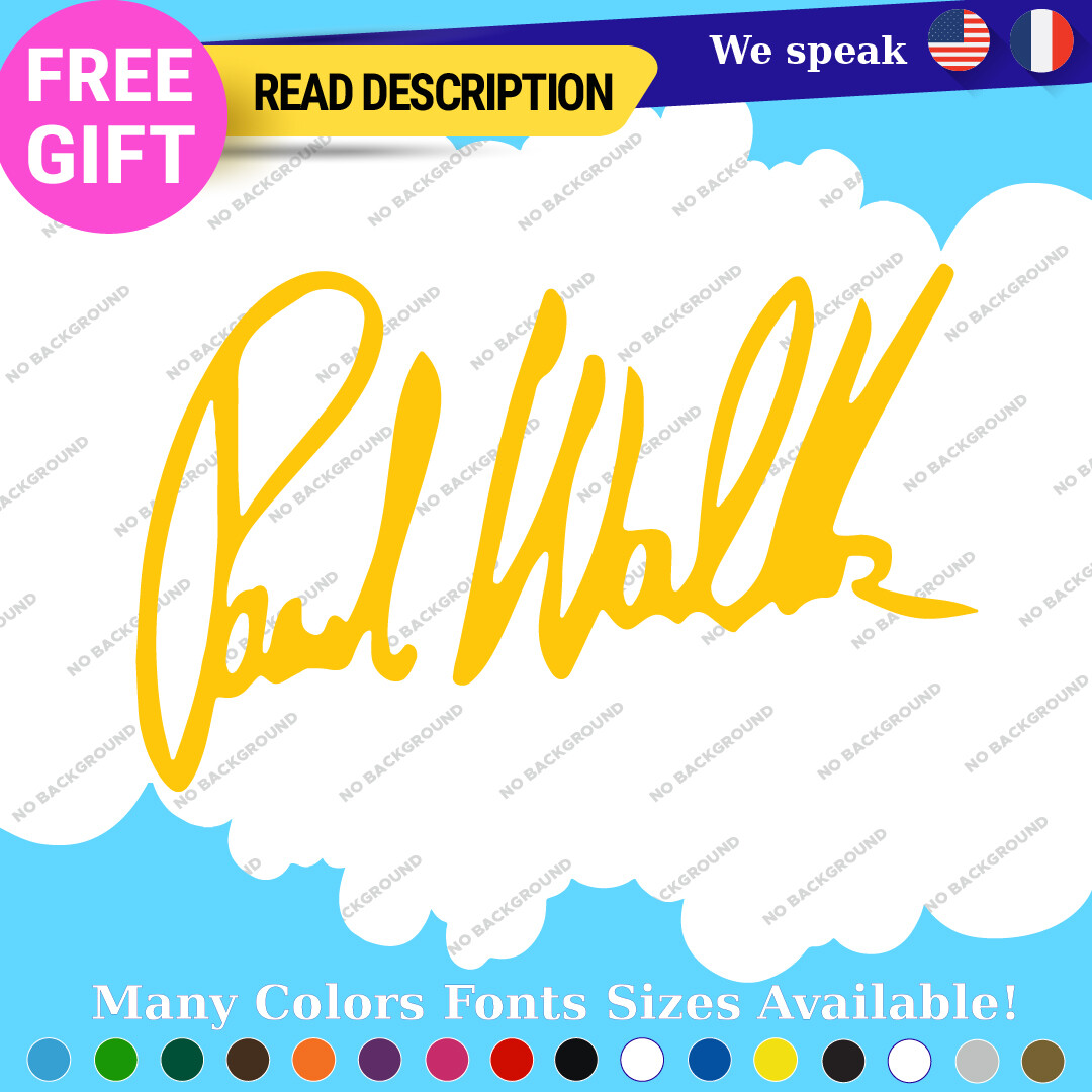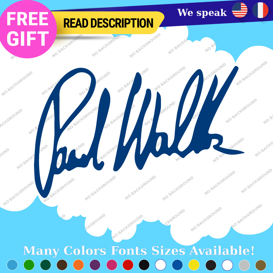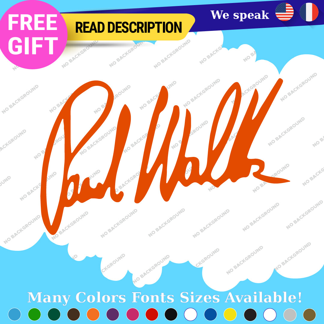 Celebrate the legacy of Paul Walker with our premium vinyl autograph decals. Available in various sizes and colors, these custom die-cut stickers are perfect for adorning your car, motorcycle, or trailer. With a durable self-adhesive design and a 5-year warranty, they offer a stylish way to showcase your passion for racing and the Fast and Furious franchise. Priced affordably between $8.65 and $10.95, they are a must-have for fans and collectors alike.
