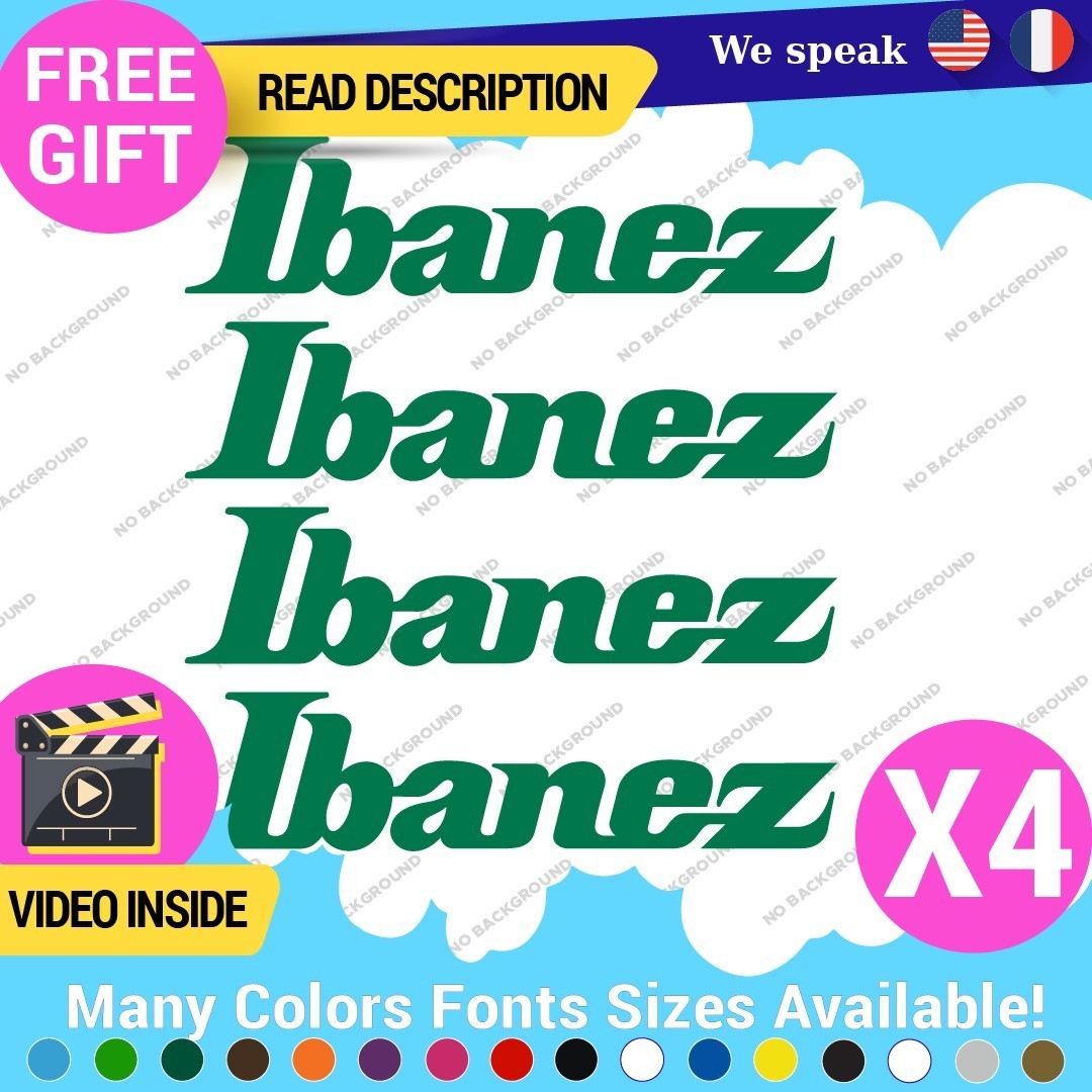 Enhance your guitar with the Ibanez Decals Stickers, crafted from high-quality vinyl for durability and style. These customizable decals feature a unique swoosh design, perfect for personalizing your headstock or vehicle. Available in a variety of colors and finishes, they are self-adhesive and easy to apply. Priced between $8.65 and $11.65, they offer a touch of vintage flair for music enthusiasts and collectors alike.