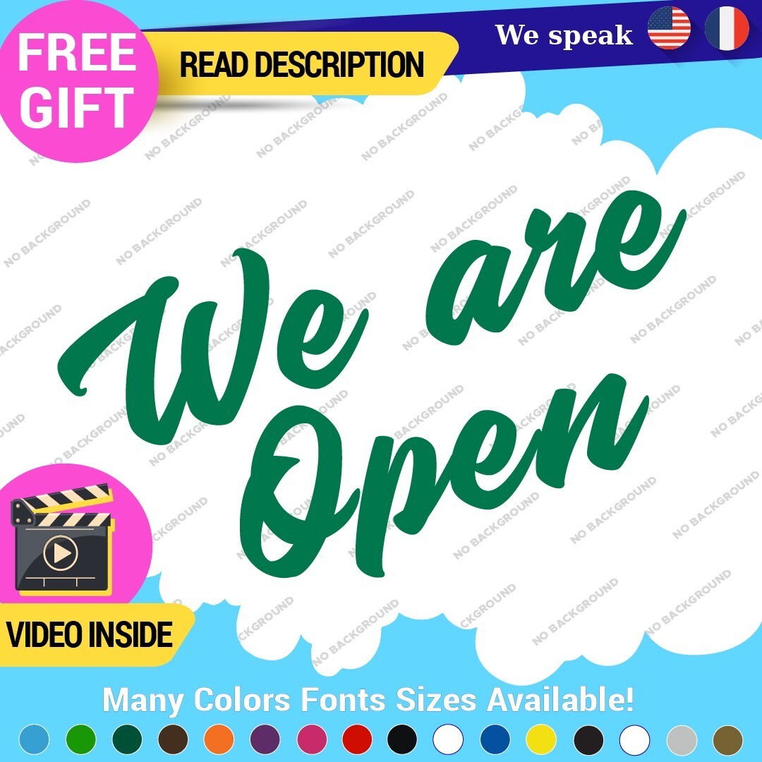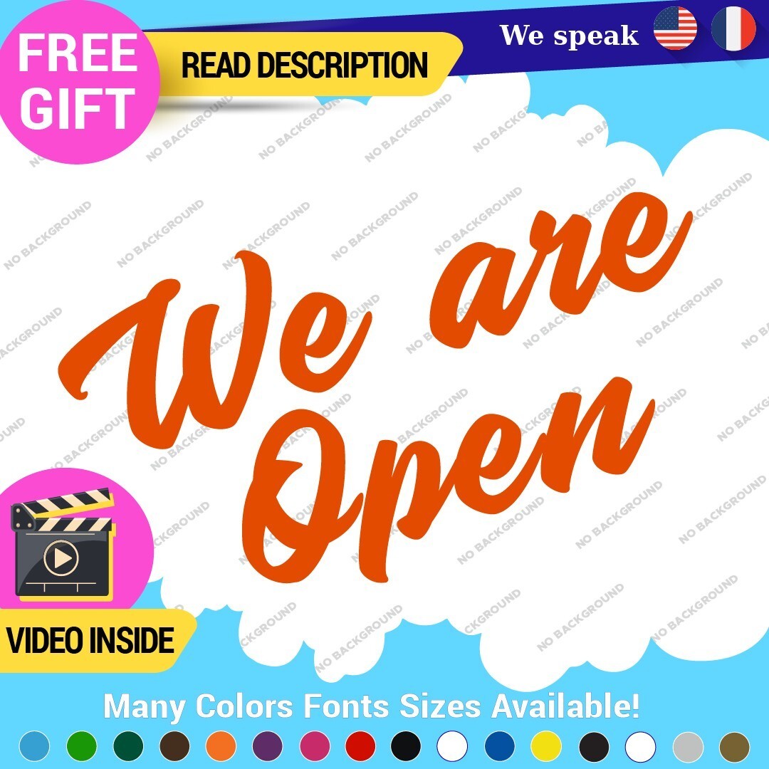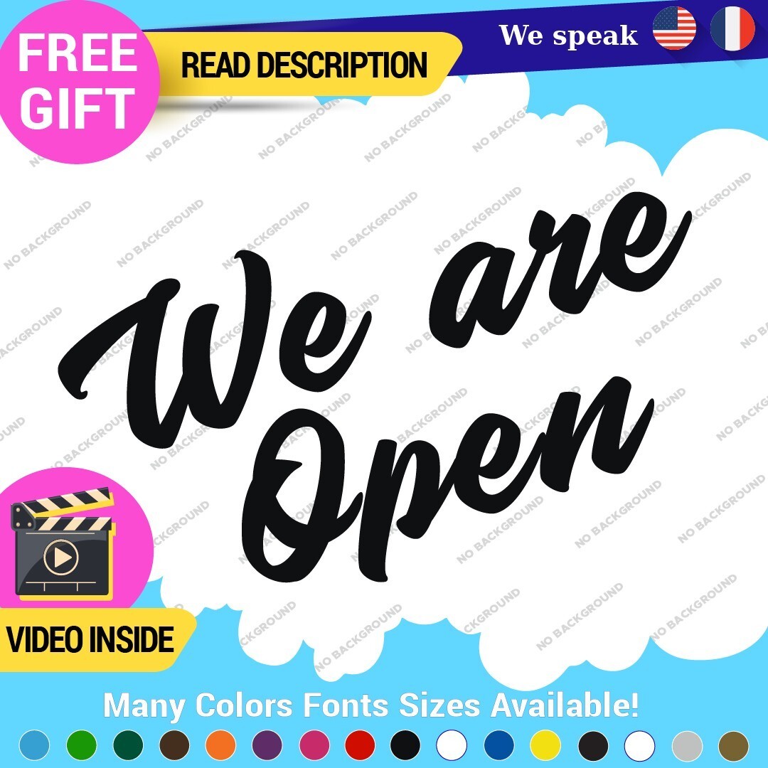 We Are Open Decal Sticker Vinyl Store Windows Shop Wall Sign Business Hours ❤